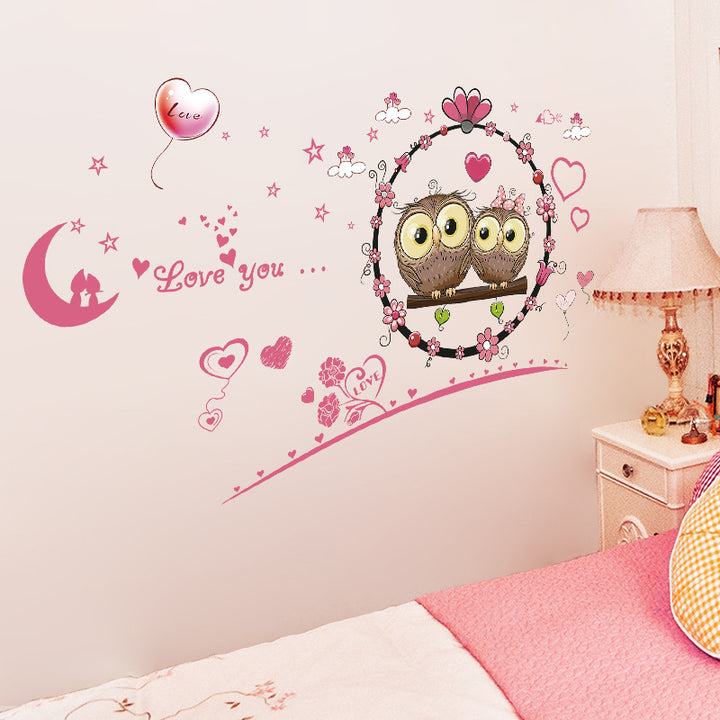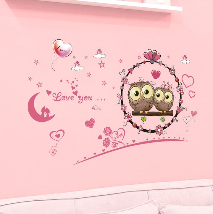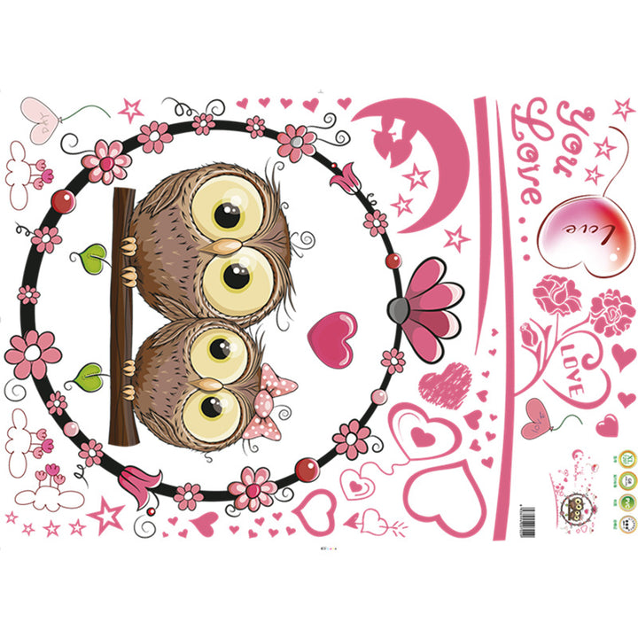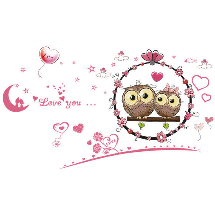 Cartoon Love Owl Children's Room Bedroom Living Room Background Decoration Removable Self-Adhesive Sticker XL7207