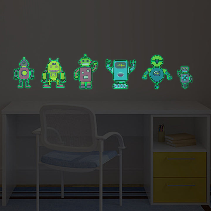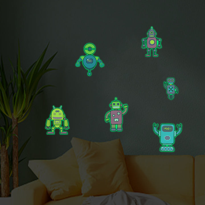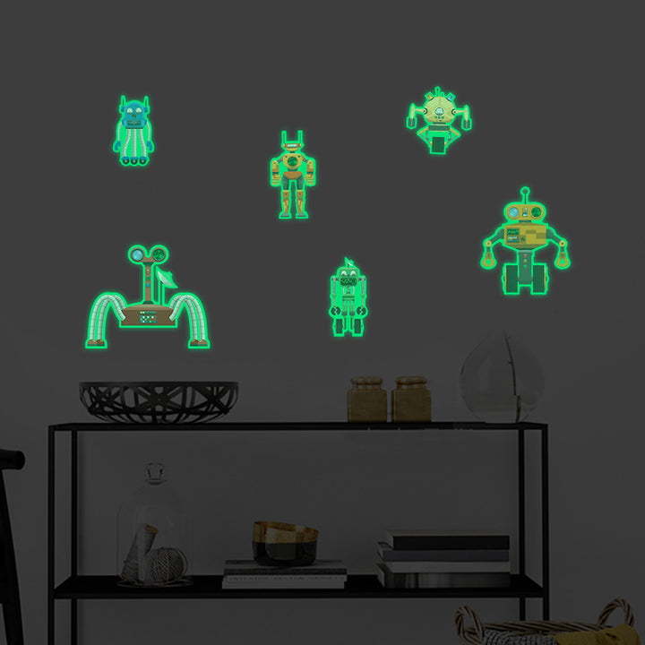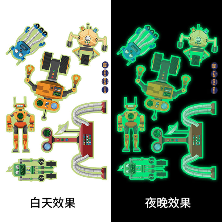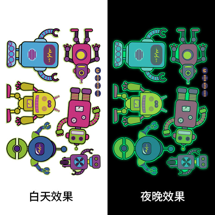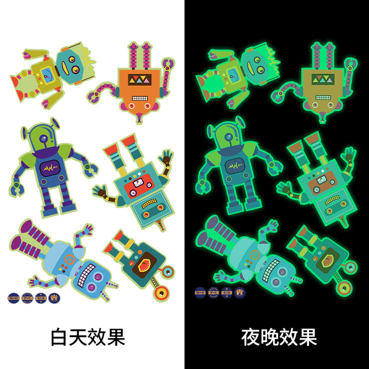 Cartoon luminous robot fluorescent wall sticker living room bedroom children's room decoration self-adhesive sticker luminous luminous wall sticker