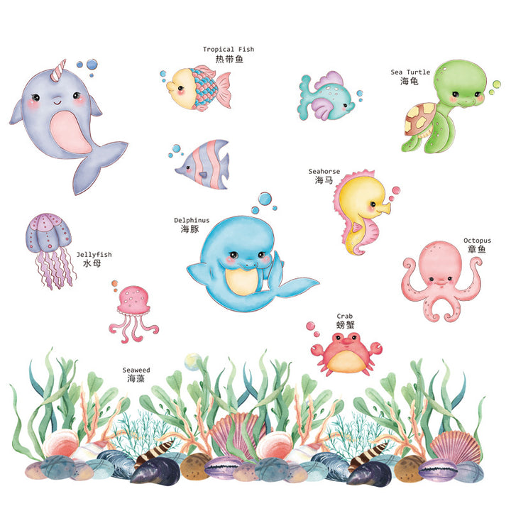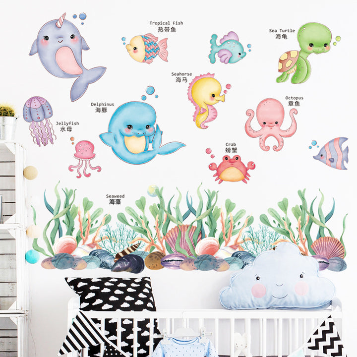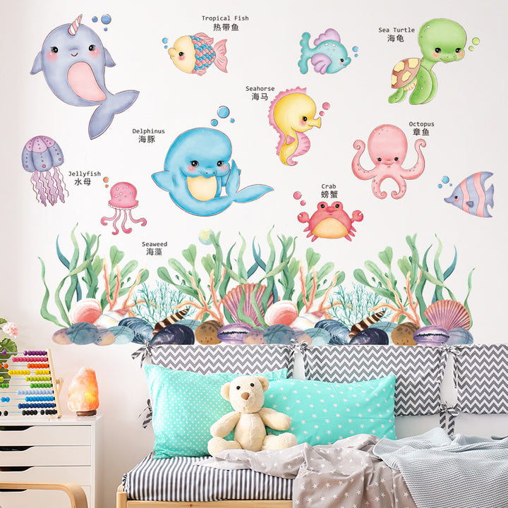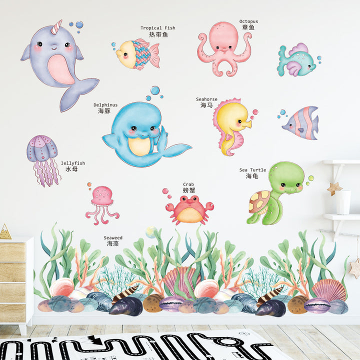 Cartoon marine animals dolphins cute picture reading literacy kindergarten puzzle early education wall sticker self-adhesive bathroom waterproof