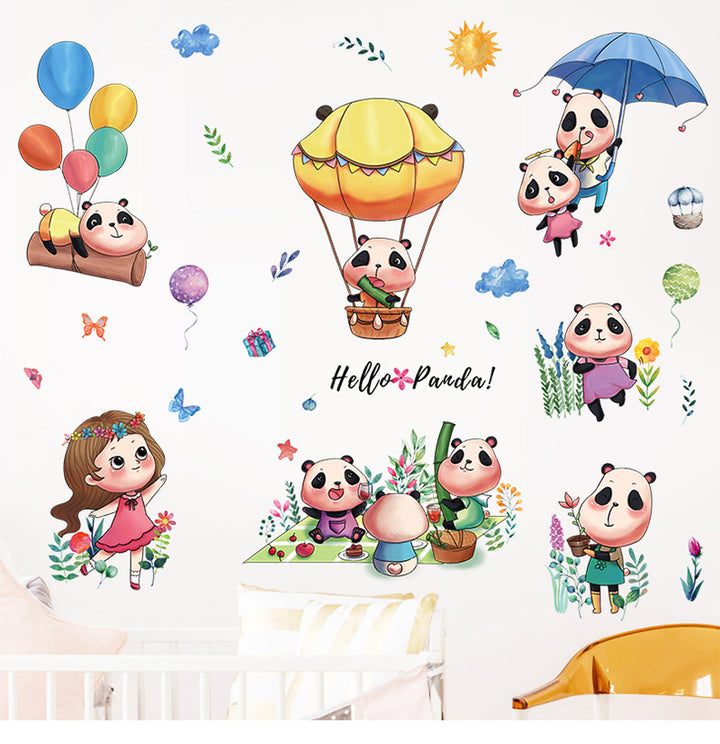 Cartoon panda balloon wall sticker children's room porch bedside cupboard dormitory background decoration sticker HT94024