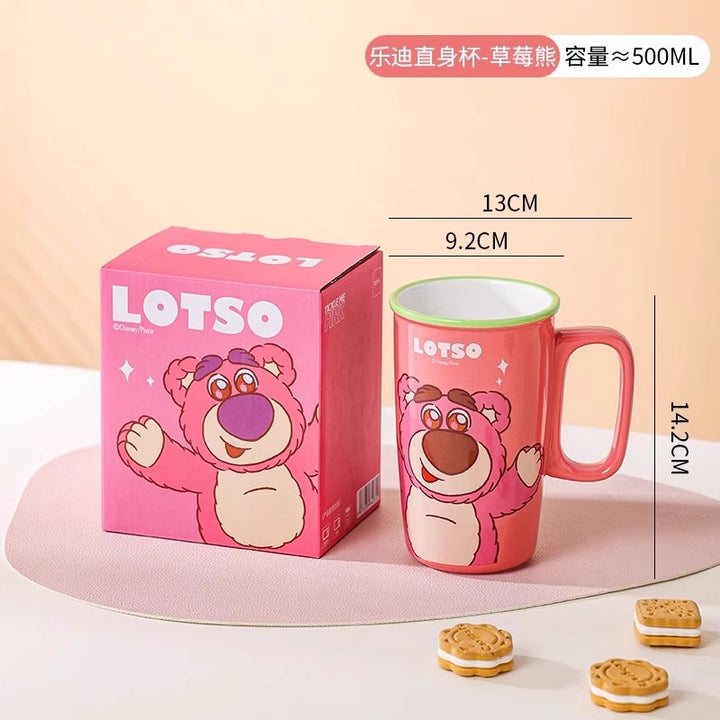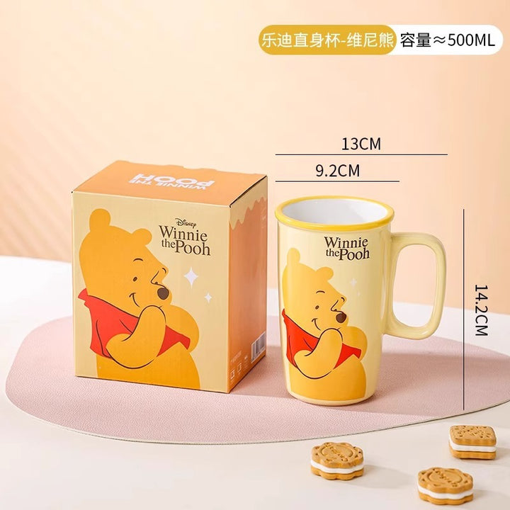 Cartoon straight cup 500ml large-capacity ceramic mug handle cup gift box household water cup unisex