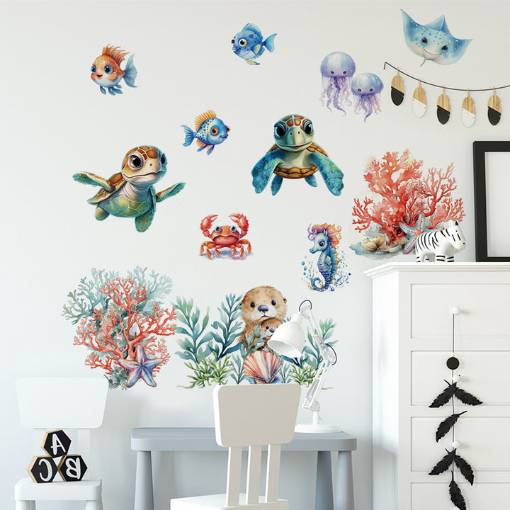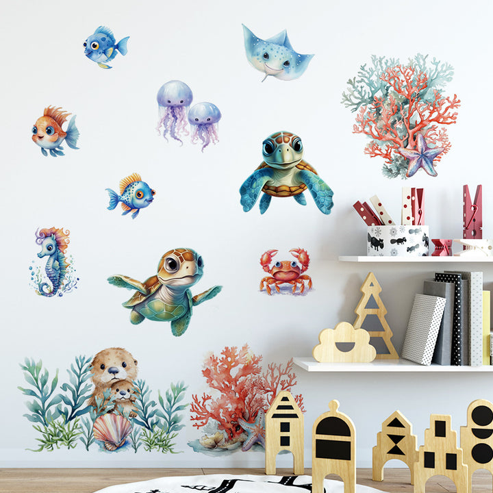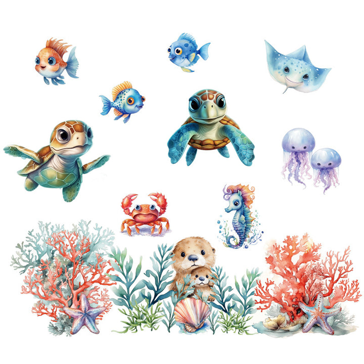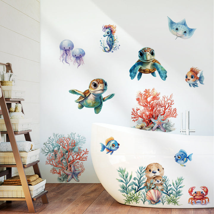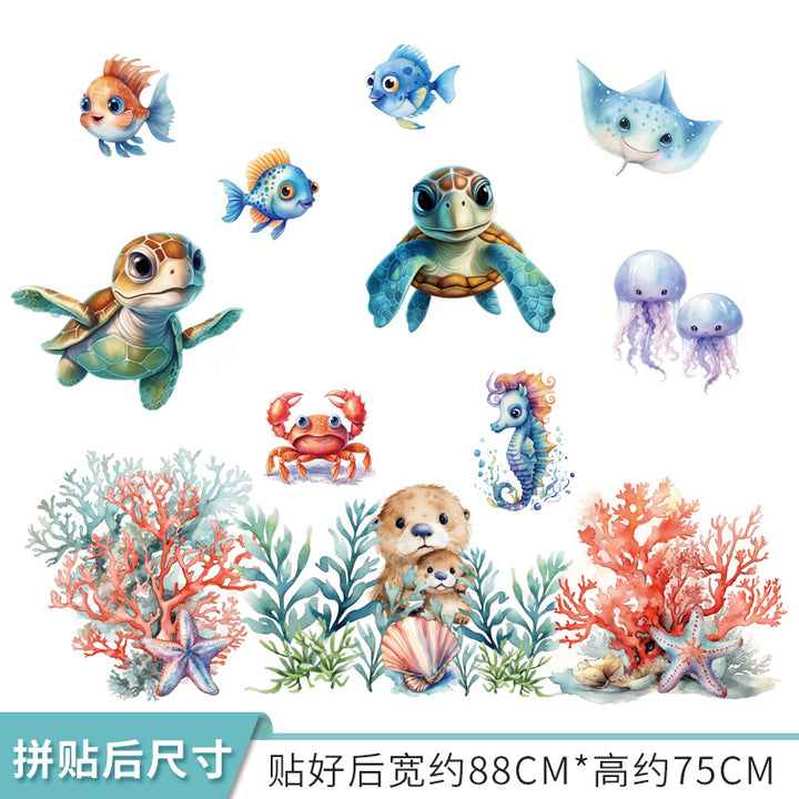 Cartoon underwater animal wall sticker children's room aquarium wall decoration sticker swimming pool glass wall sticker