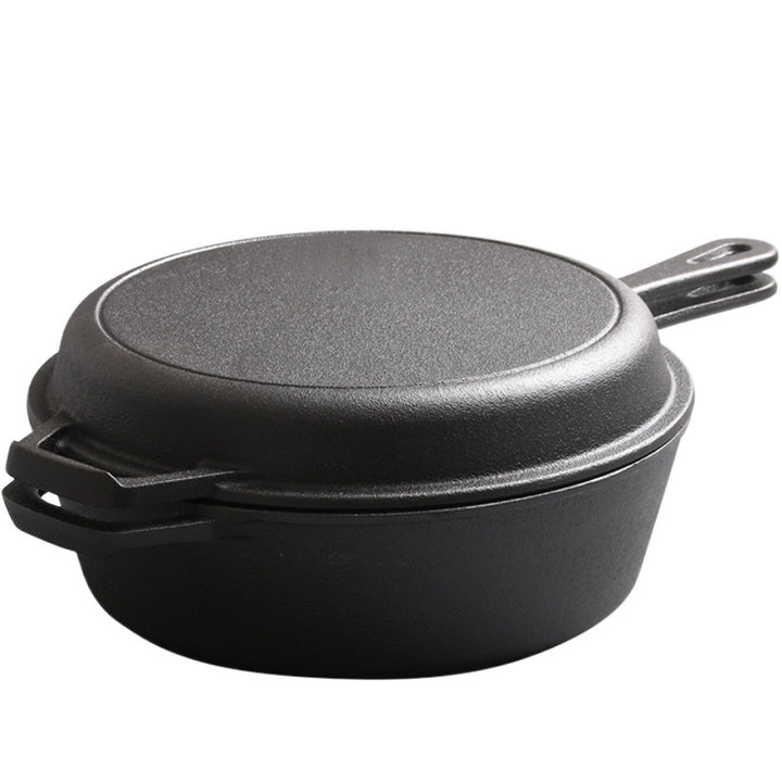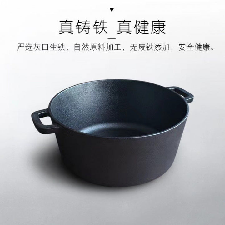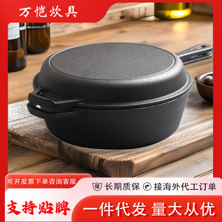 Cast iron dual-purpose pan, flat-bottomed steak frying pan, household soup pan, uncoated saucepan, thickened old-fashioned handmade raw iron pan