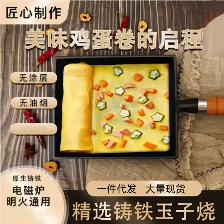 Cast iron uncoated thickened tamarind frying pan Japanese egg roll pan Square frying pan Non-stick pan Universal