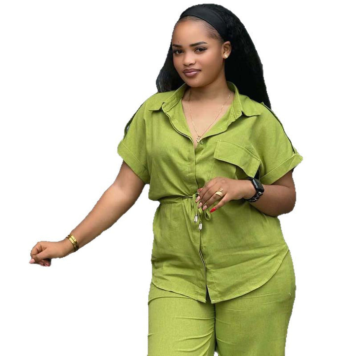 casual Africa new suit solid color lapel top large size casual trousers two-piece set European and American women's clothing