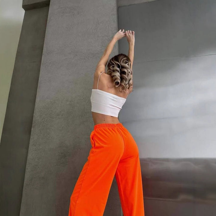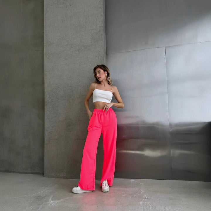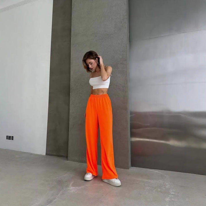 Casual European and American new solid color loose and thin drape wide-leg pants fluorescent street versatile casual pants trousers