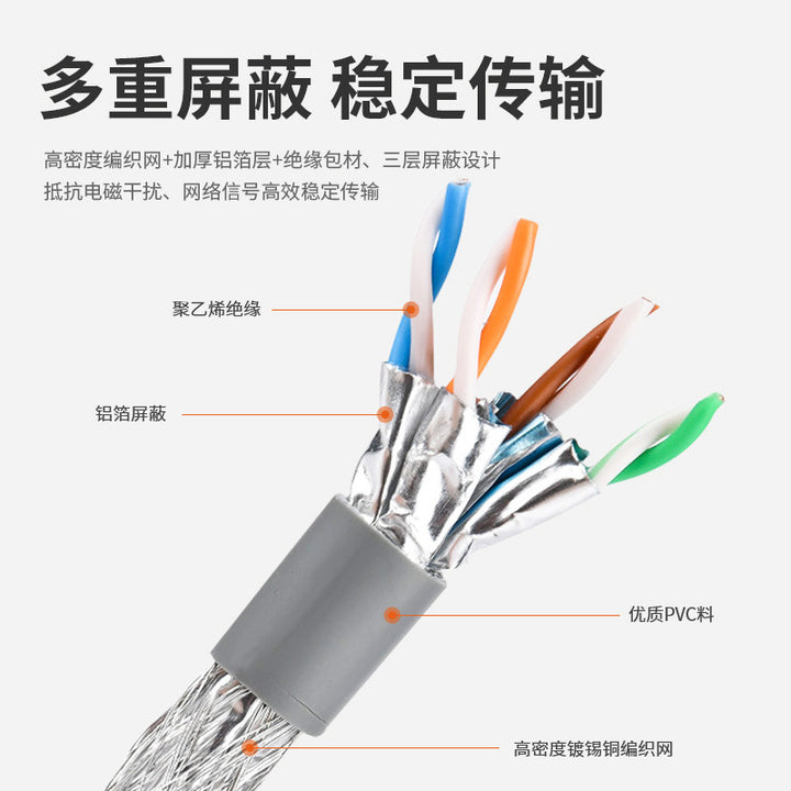 Cat7e oxygen-free copper SFTP household 5g 305m 10 Gigabit double shielded pure copper super six seven eight network cable