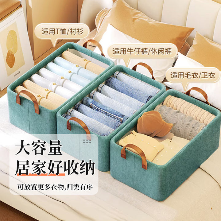 Cationic steel frame storage box Portable home fabric clothing storage basket Foldable wardrobe clothing storage box