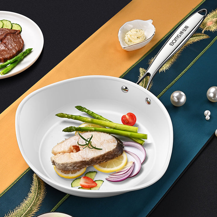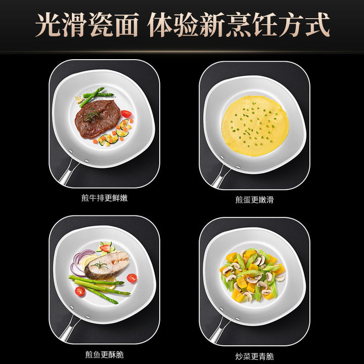 Ceramic frying pan, uncoated non-stick pan cooking breakfast steak omelette pan household gas stove wok