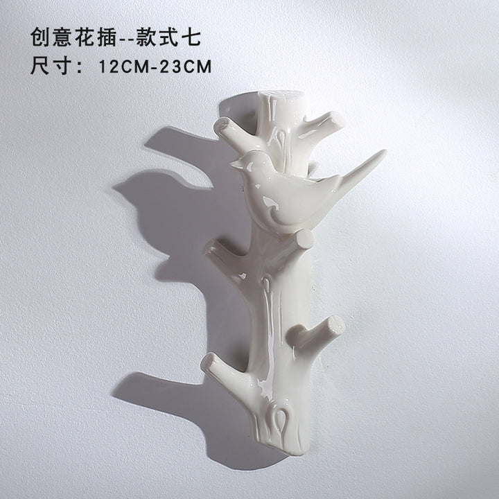Ceramic glazed hook, vase pendant, bird ornament, cloakroom hook, dried flower ceramic wall non-marking nail hook
