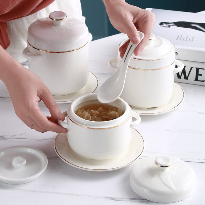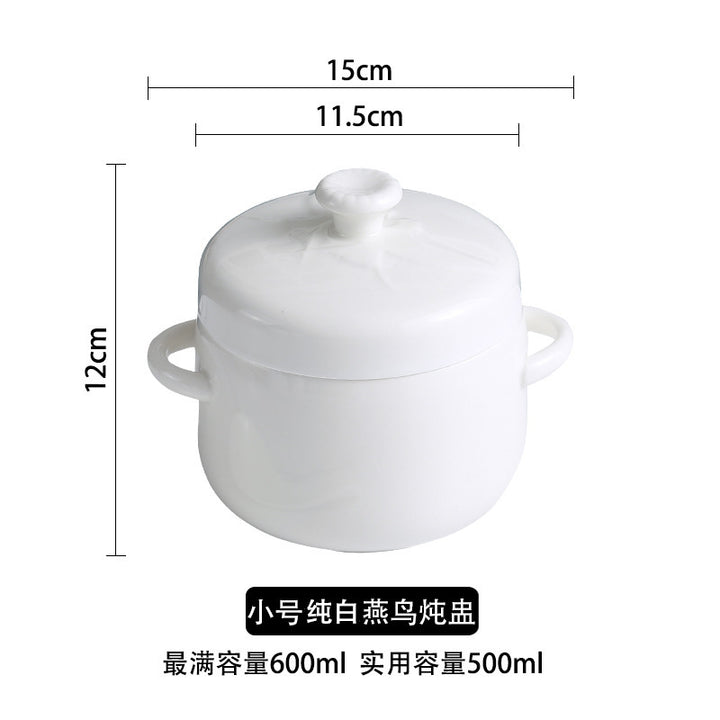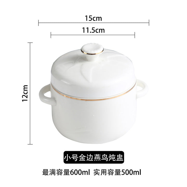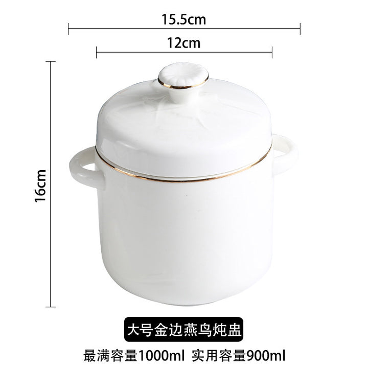 Ceramic water-proof stew cup Phnom Penh hotel with lid double lid binaural bird's nest stew bowl liner steamed egg cup stew pot small soup cup