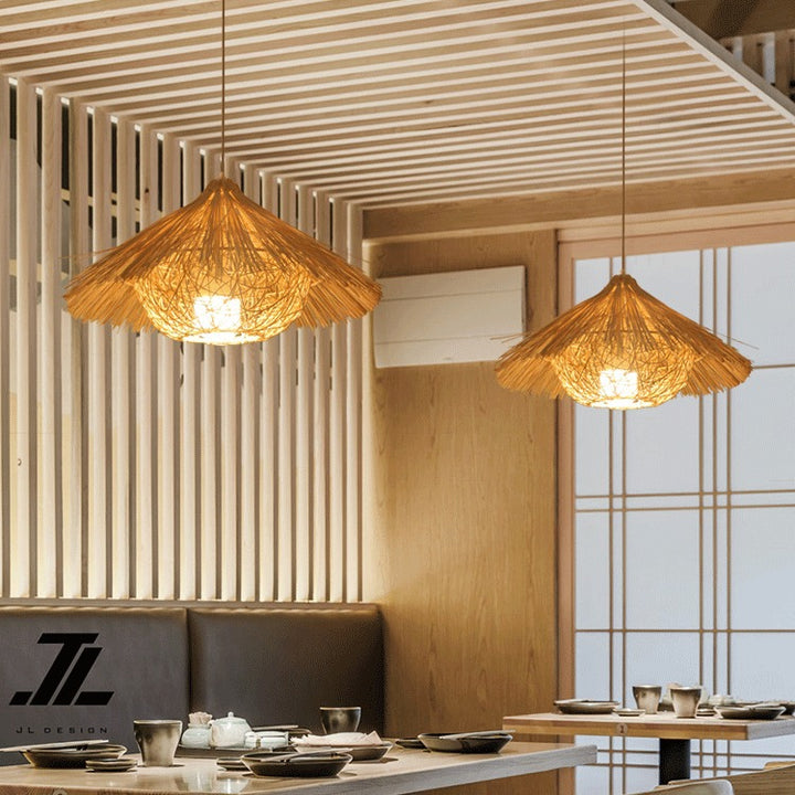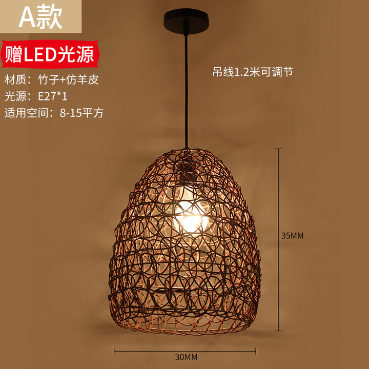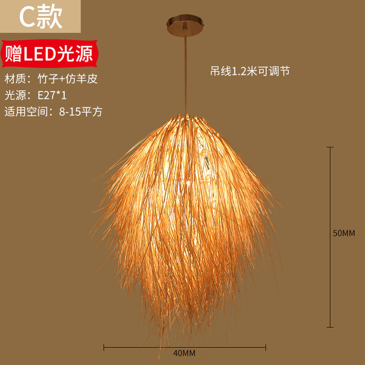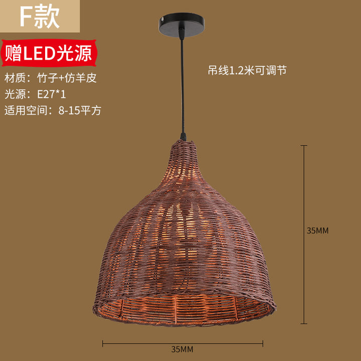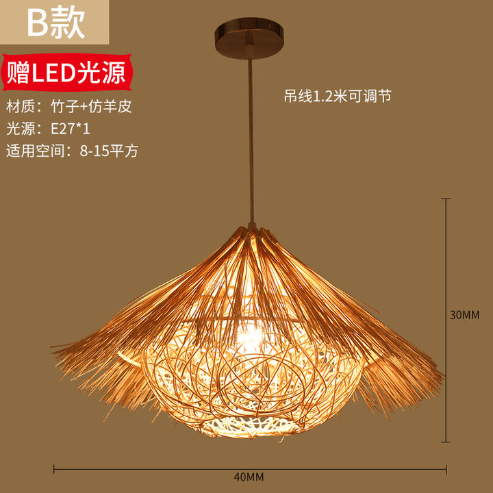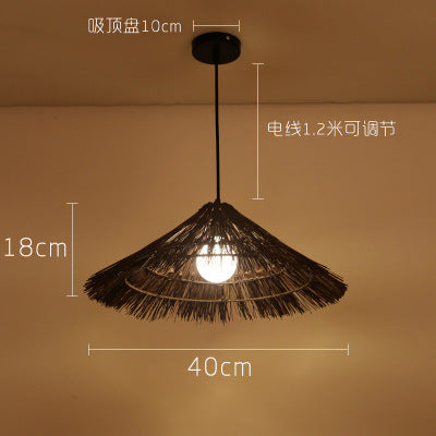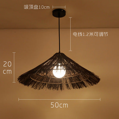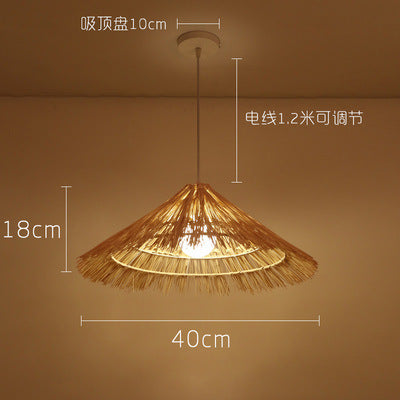 Chandelier Creative Rattan Hotel Personalized Hot Pot Shop Bamboo Chandelier Restaurant Chandelier Straw Hat Light Quiet Wind Zhongshan