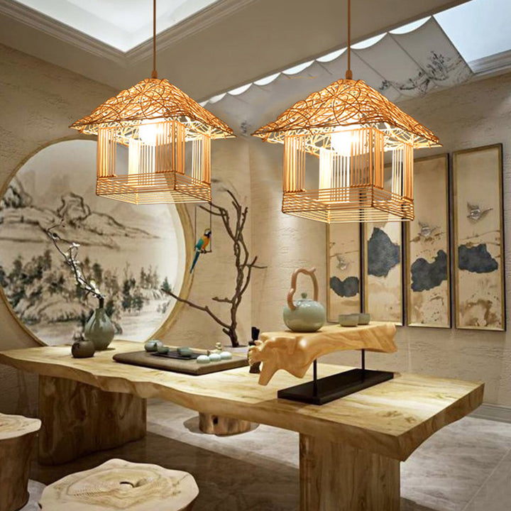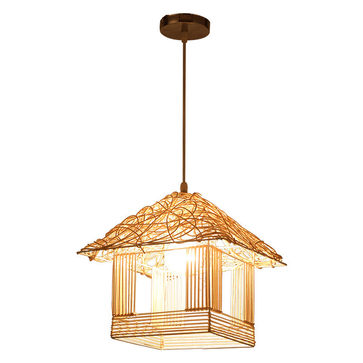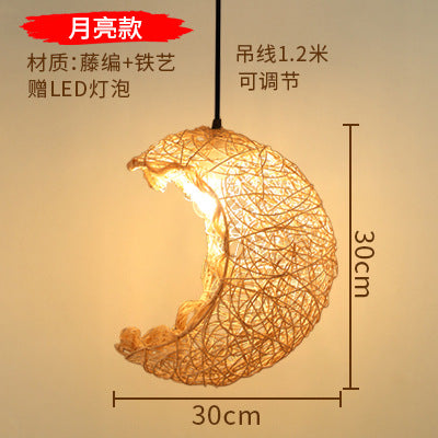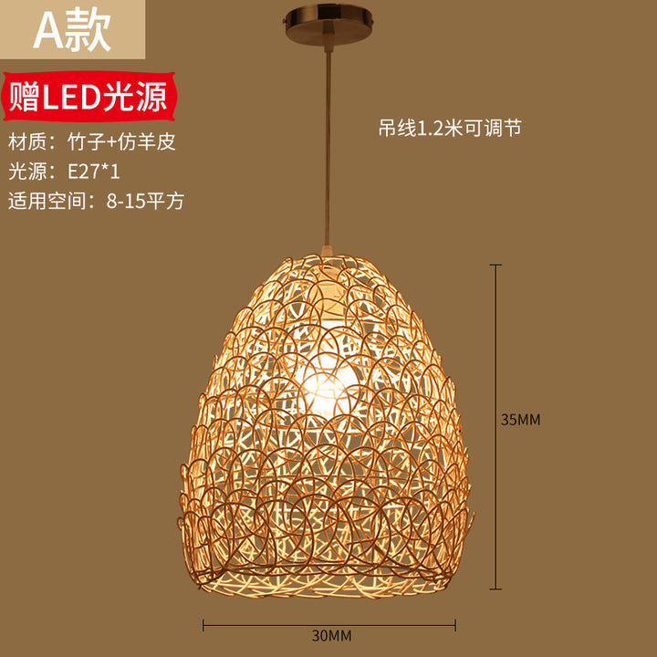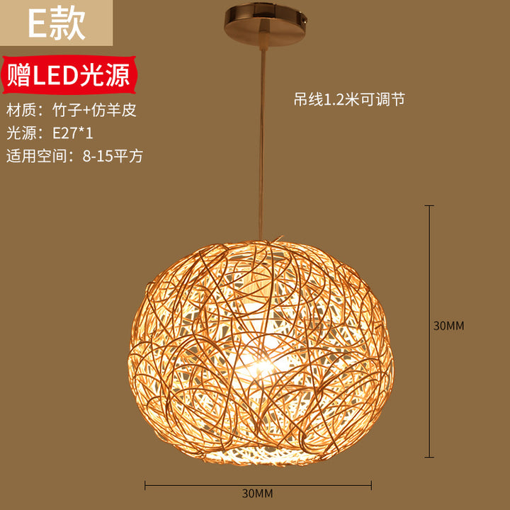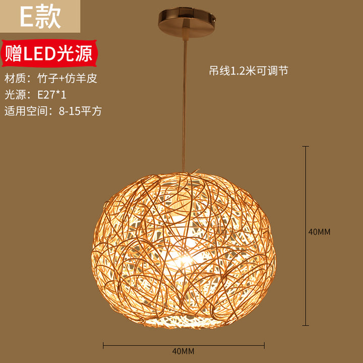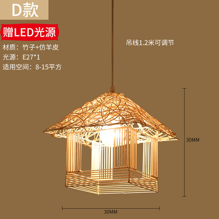 Chandelier Creative Rattan Hotel Personalized Hot Pot Shop Bamboo Chandelier Restaurant Chandelier Straw Hat Light Quiet Wind Zhongshan