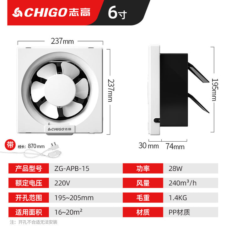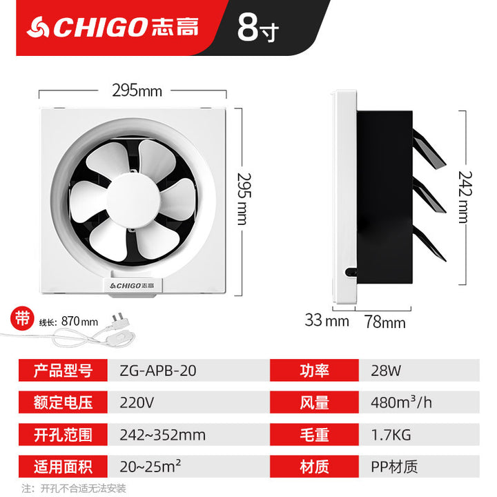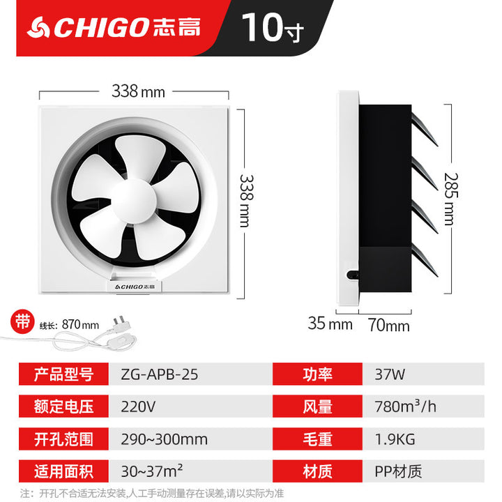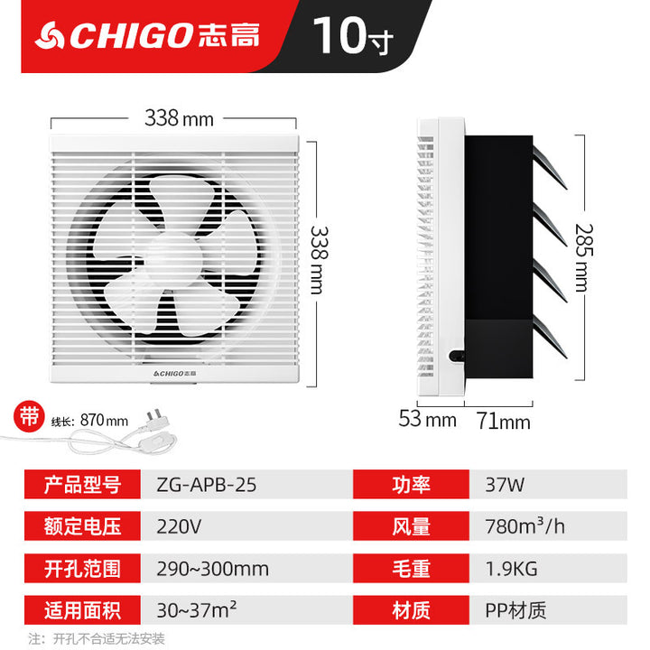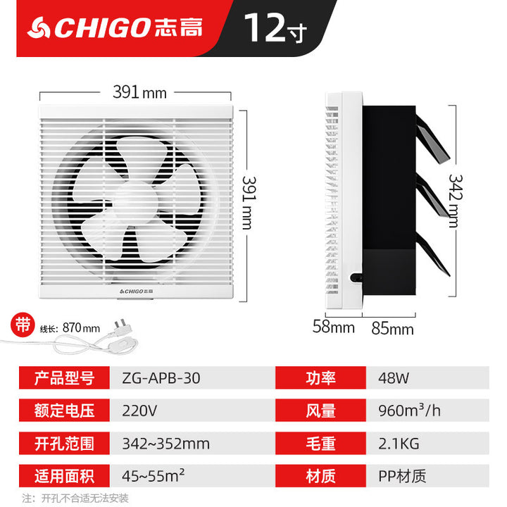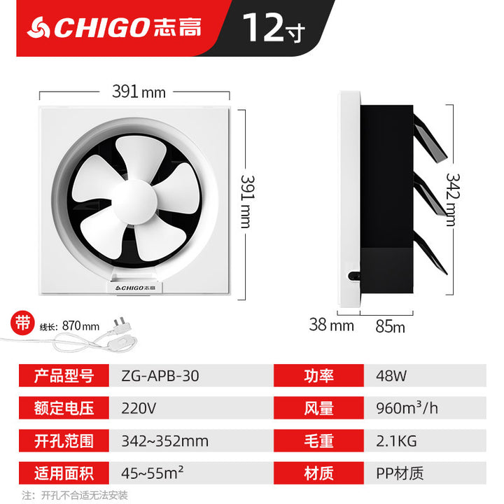 Chigo blinds with mesh ventilation fan, kitchen fume exhaust fan, small powerful and soft sound household glass exhaust fan