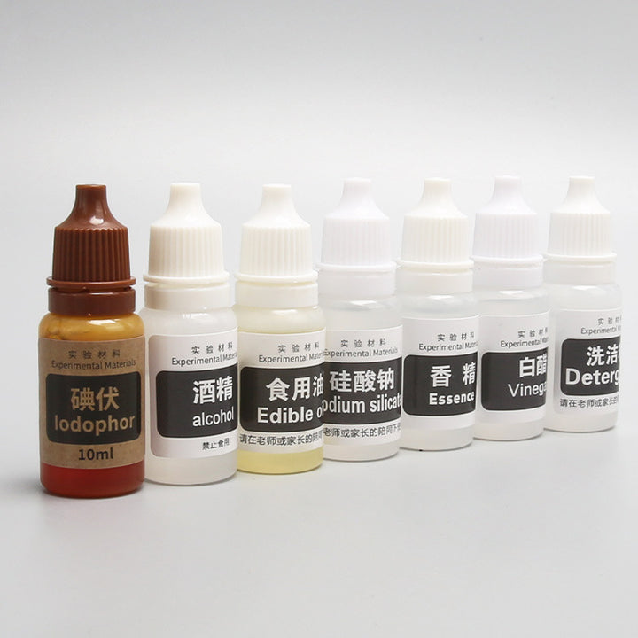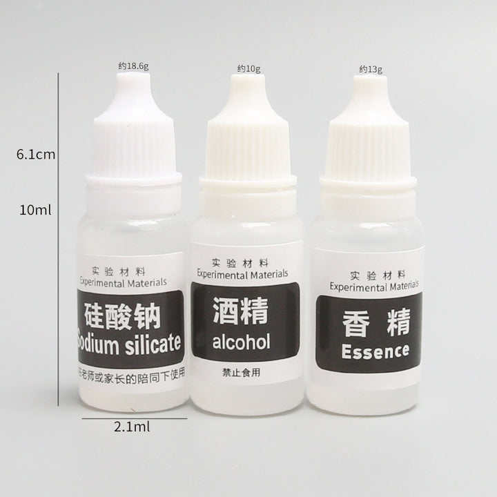 Iodophor 10ml, Flavor 10ml, 食用油10ml, 硅酸钠10ml, 白醋10ml, 洗洁精10ml, 酒精10ml, 食用油20ml, 酒精20ml |