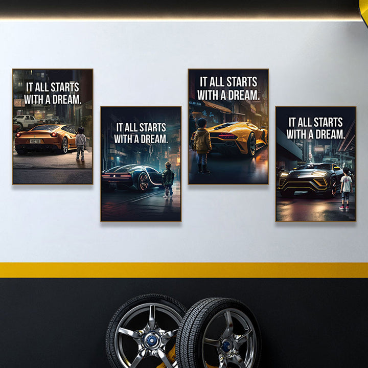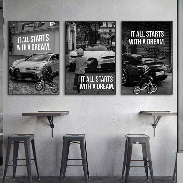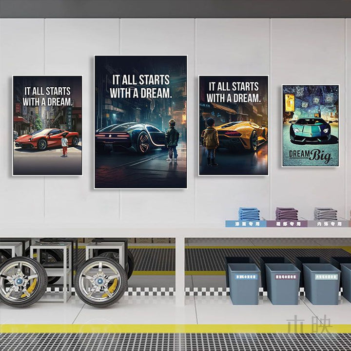 Children look at car decoration paintings Auto repair shop 4s beauty shop hanging paintings Bar racing car theme poster mural
