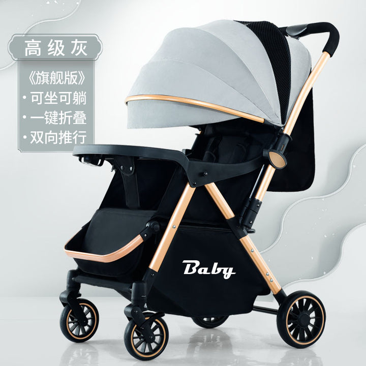 Children's baby four-wheeled stroller can seat people and can be OEM stroller can lie down and fold out with one click