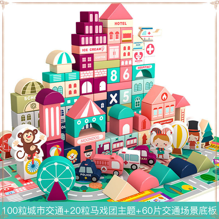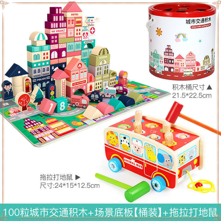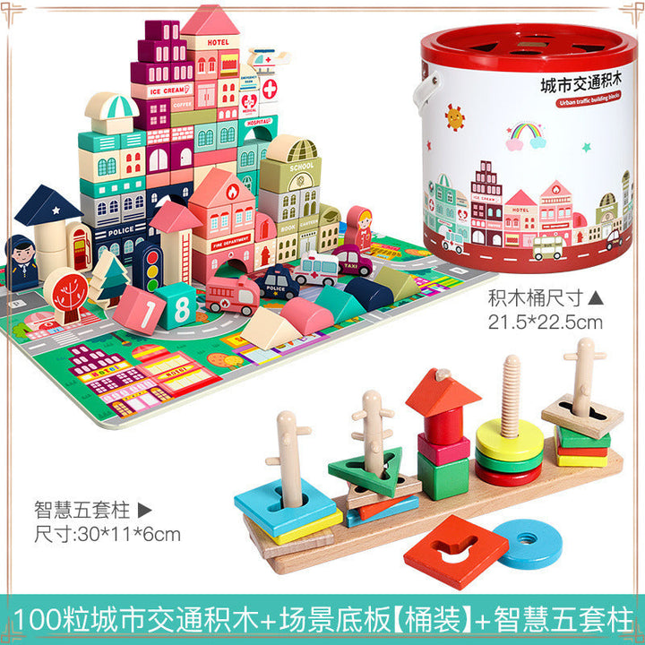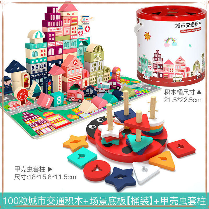 Children's building block assembly baby puzzle wood development force toys 2-4 girls boys 1-3-6 years old early education puzzle