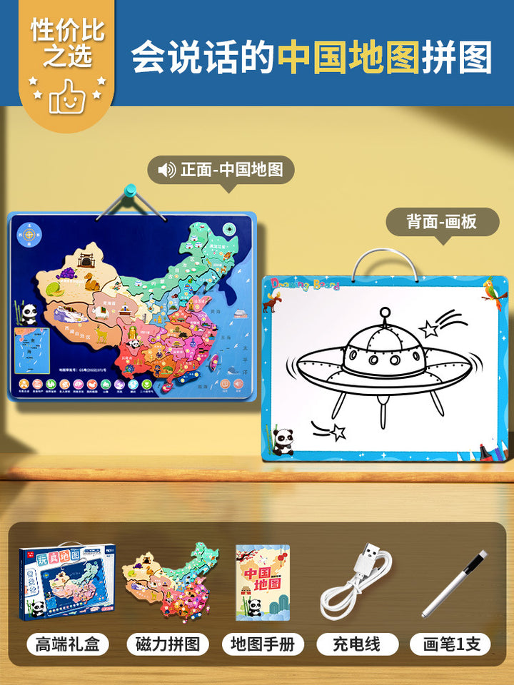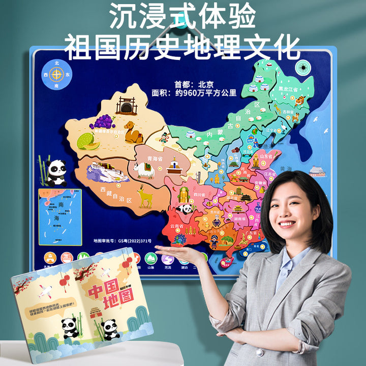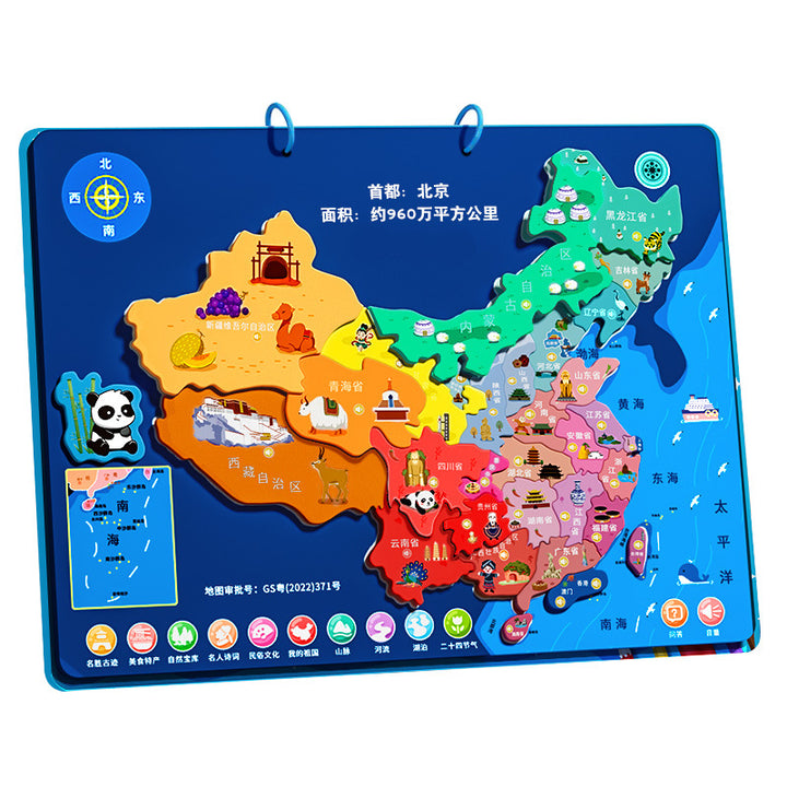 Children's educational magnetic map sound assembly primary school science and education double-sided magnetic China large puzzle map toy