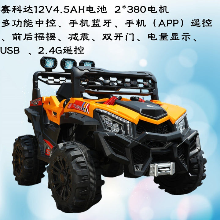 Children's electric car four-wheel double baby children's double drive stroller remote control toy car can seat people off-road car