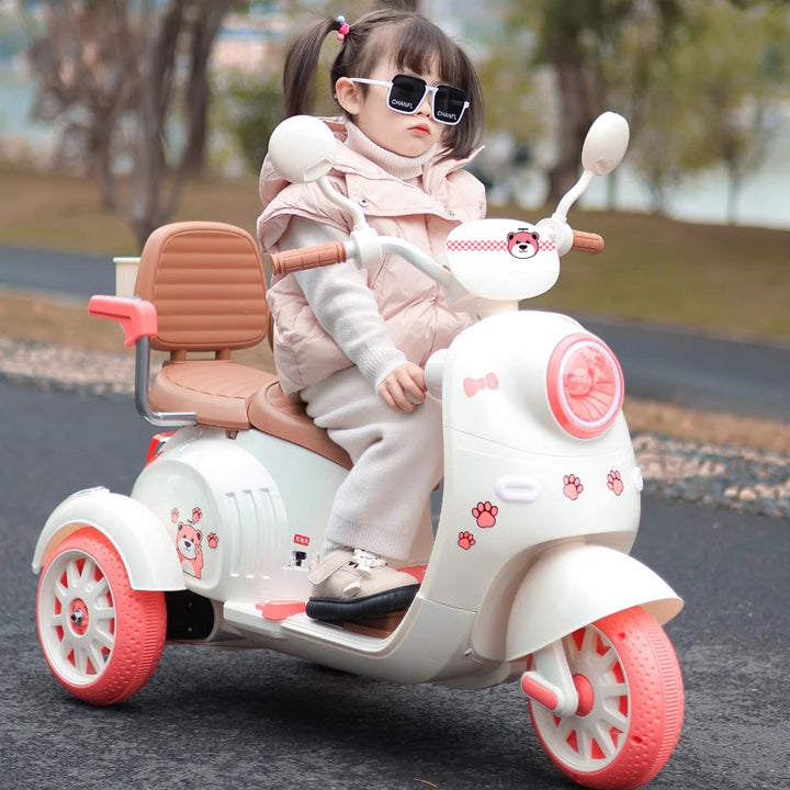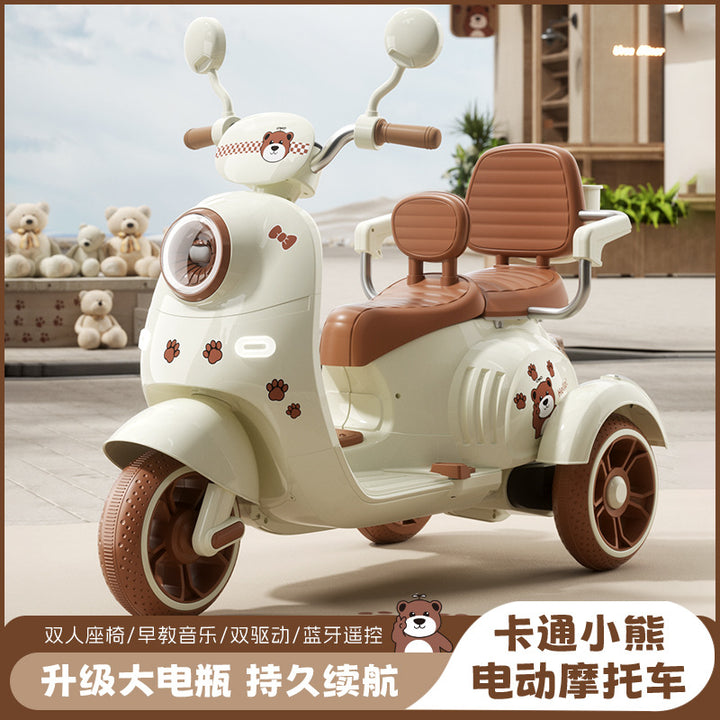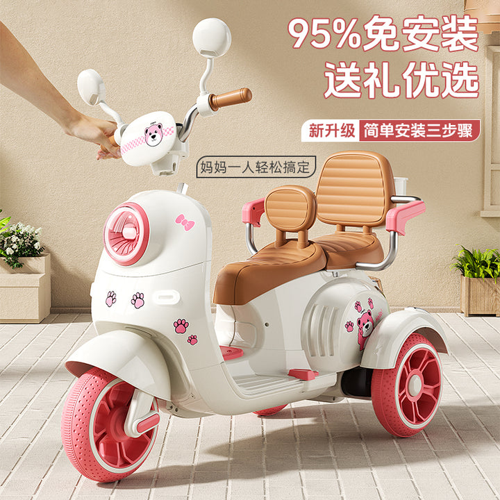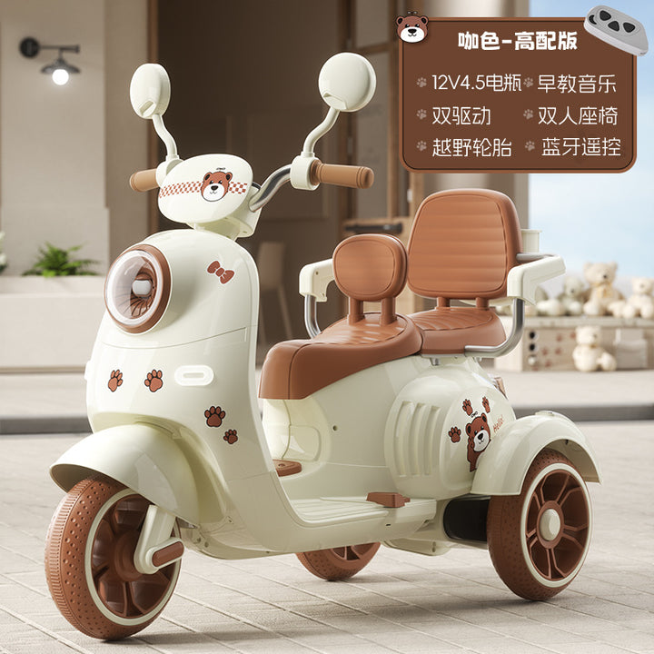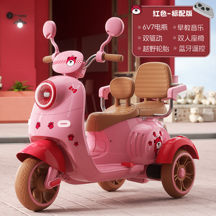 Children's electric car three-wheeled motorcycle, boys, girls and children can sit on the remote control parent-child electric toy car