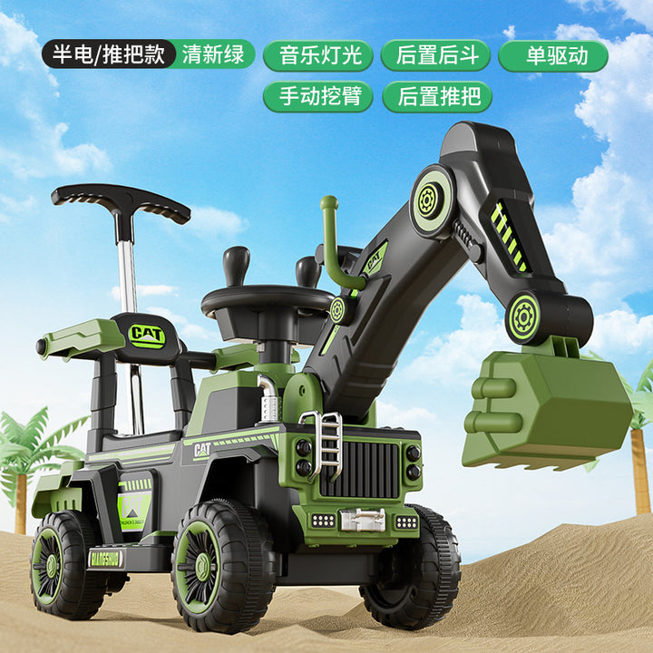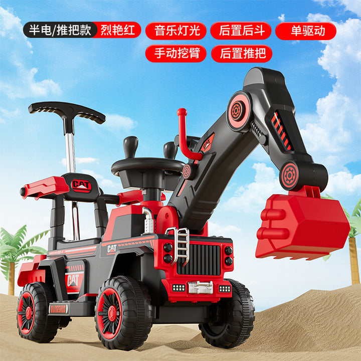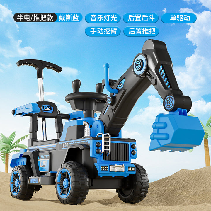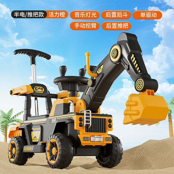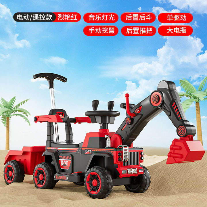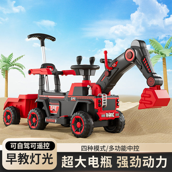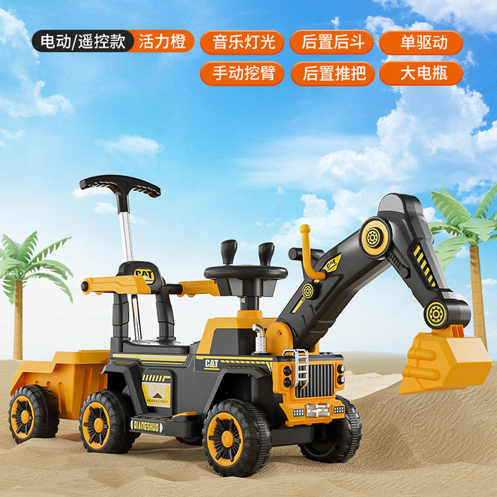 Children's electric excavator, earth excavator, hook number can sit, boy baby toy construction car remote control early education light