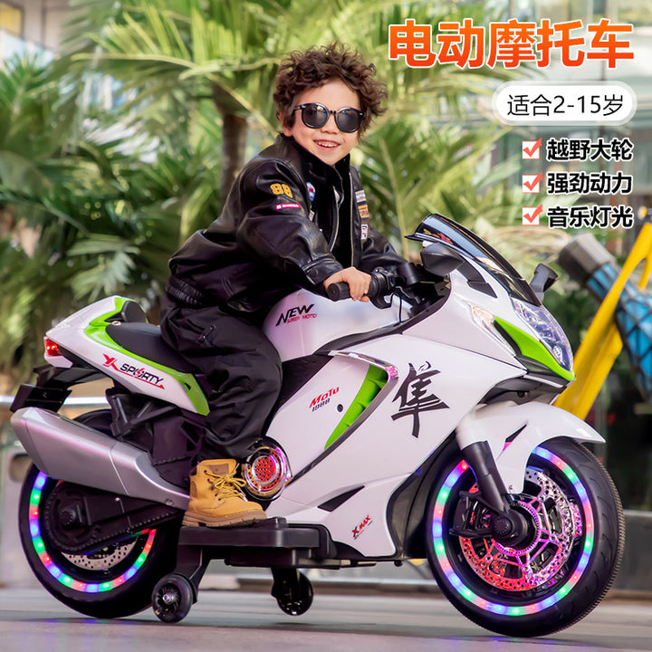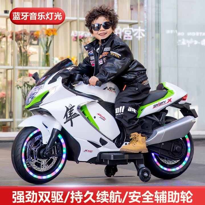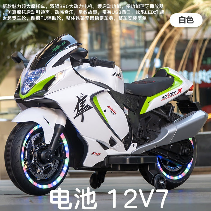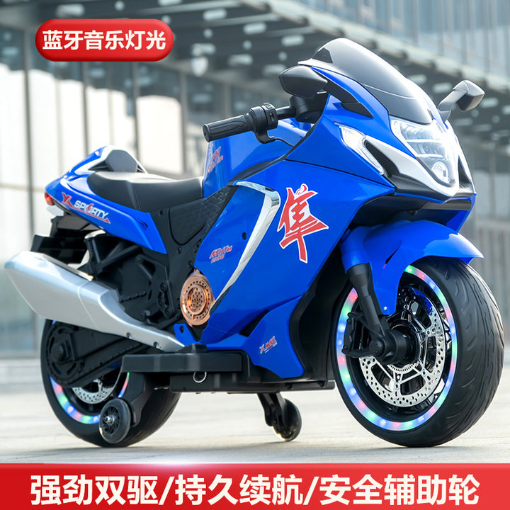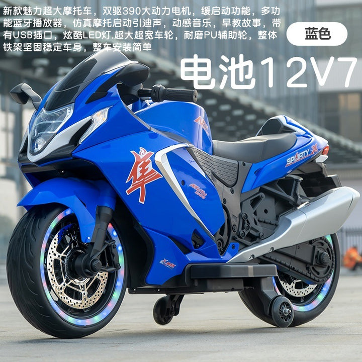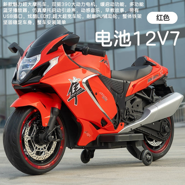 Children's electric motorcycle can seat adults, boys and girls, charging toy car, oversized double motorcycle with baby