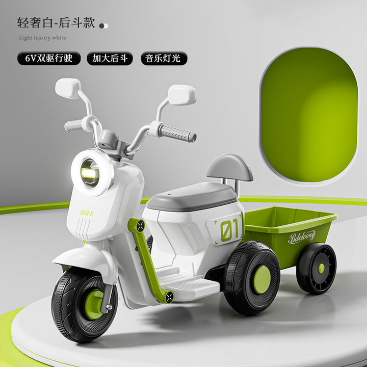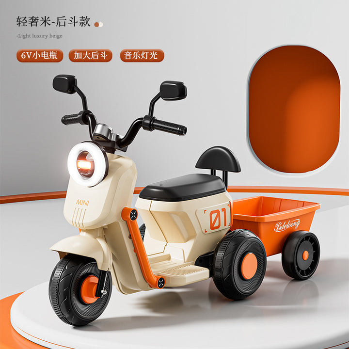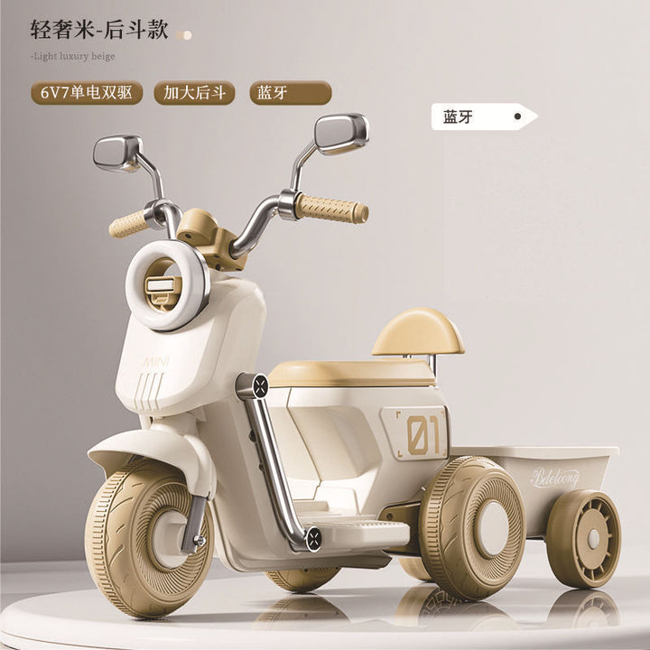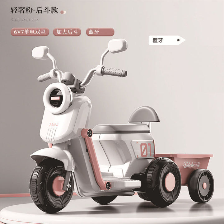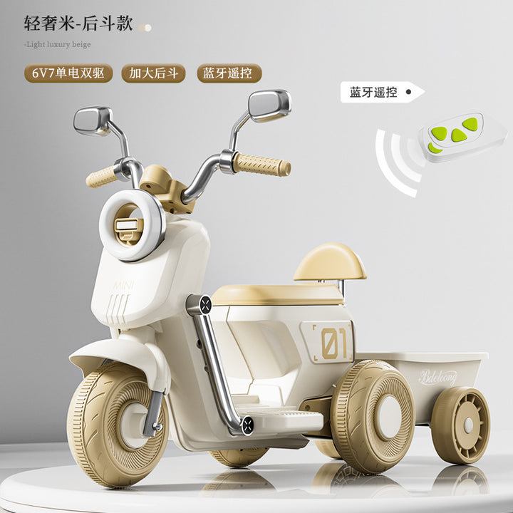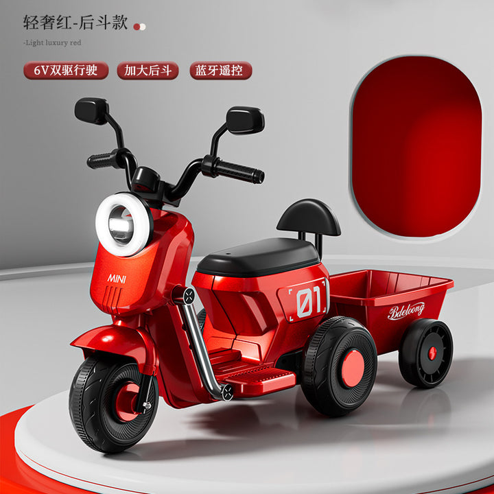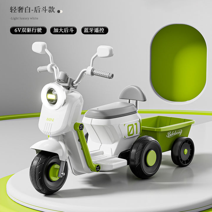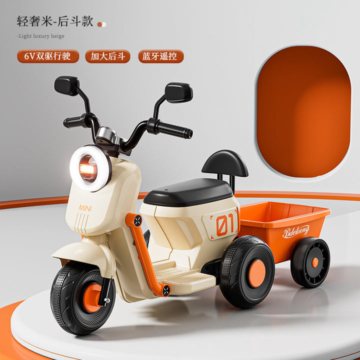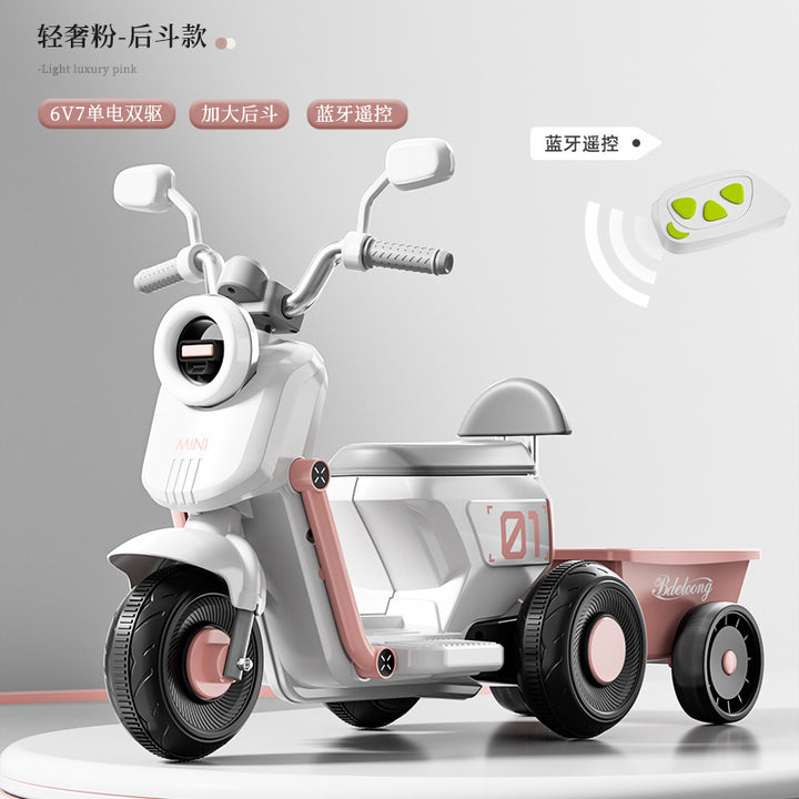 Children's electric tricycle motorcycle baby remote control toy car with trailer men and women children charging battery stroller