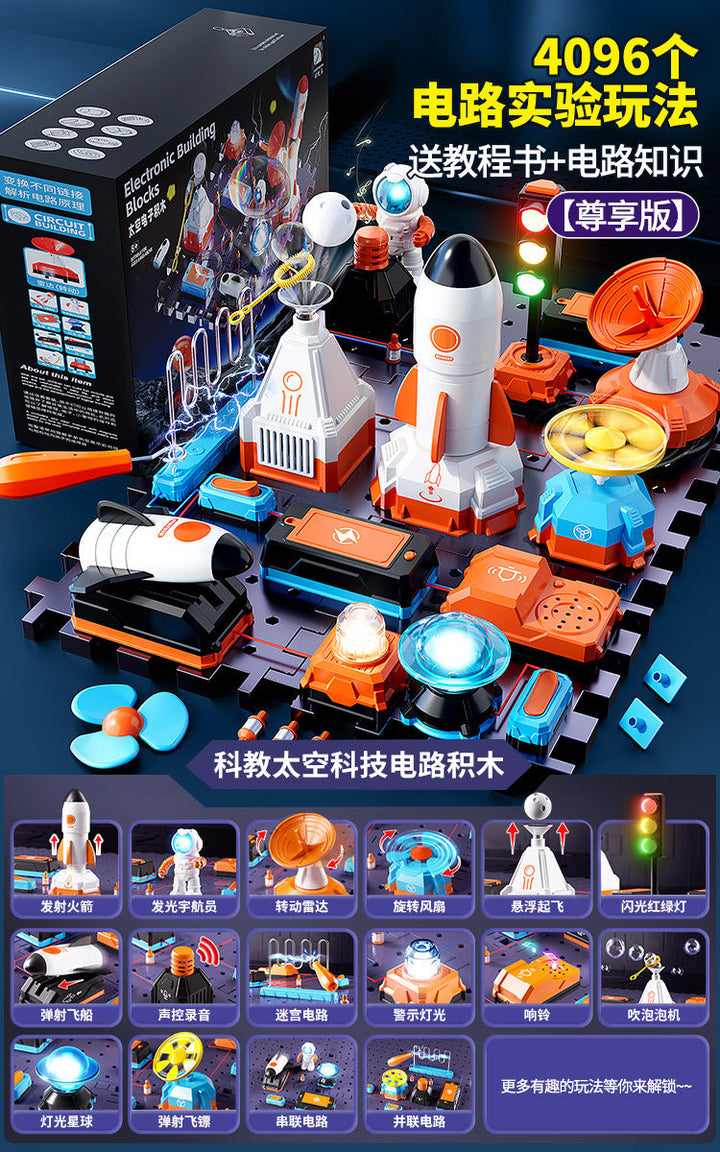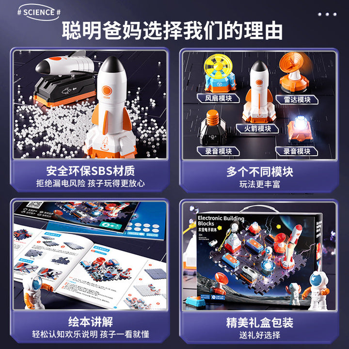 Children's electronic building block space rocket model assembly toy science and education experiment set science boy birthday gift
