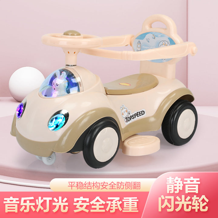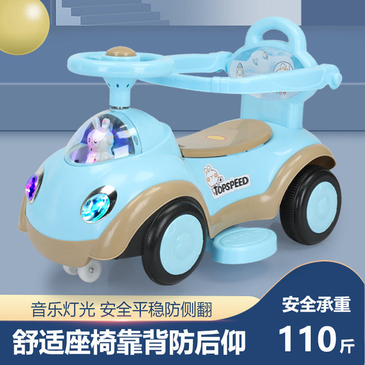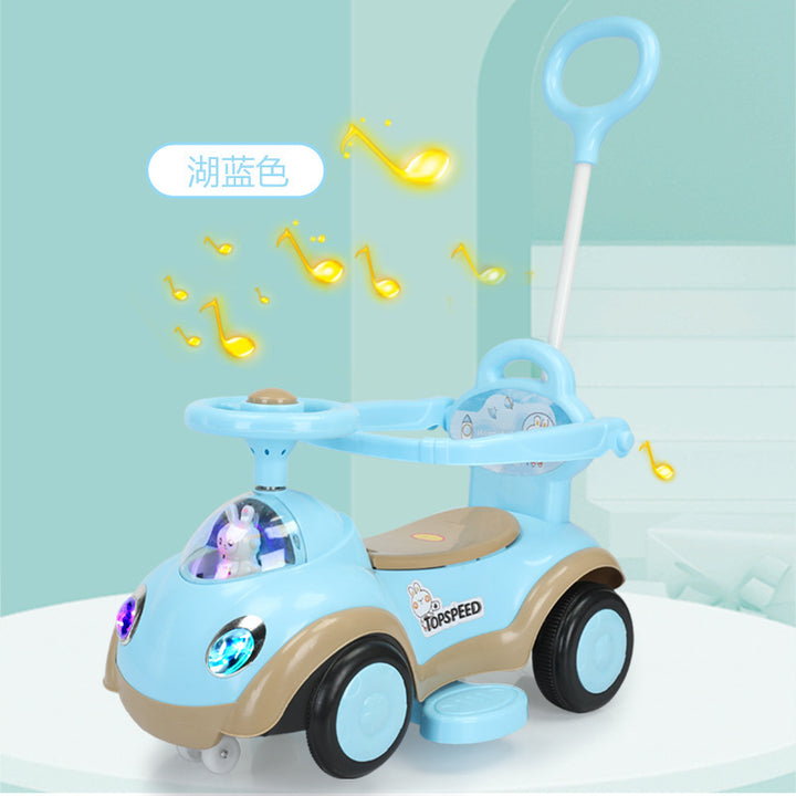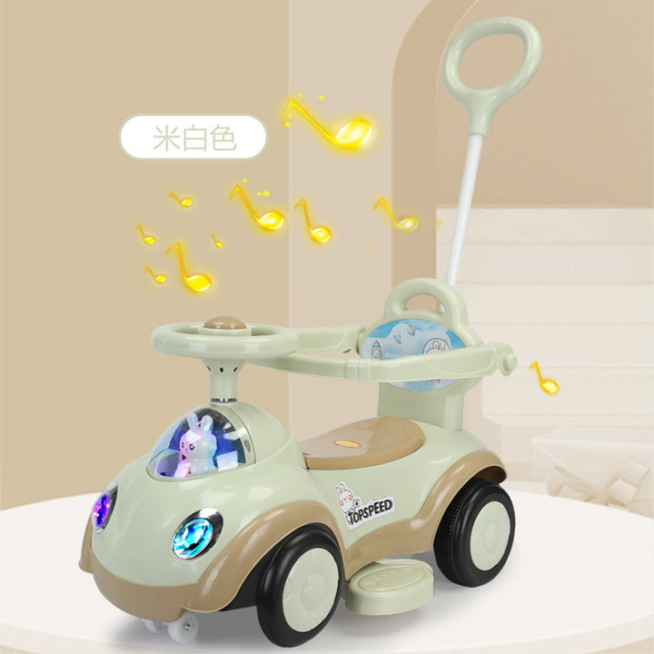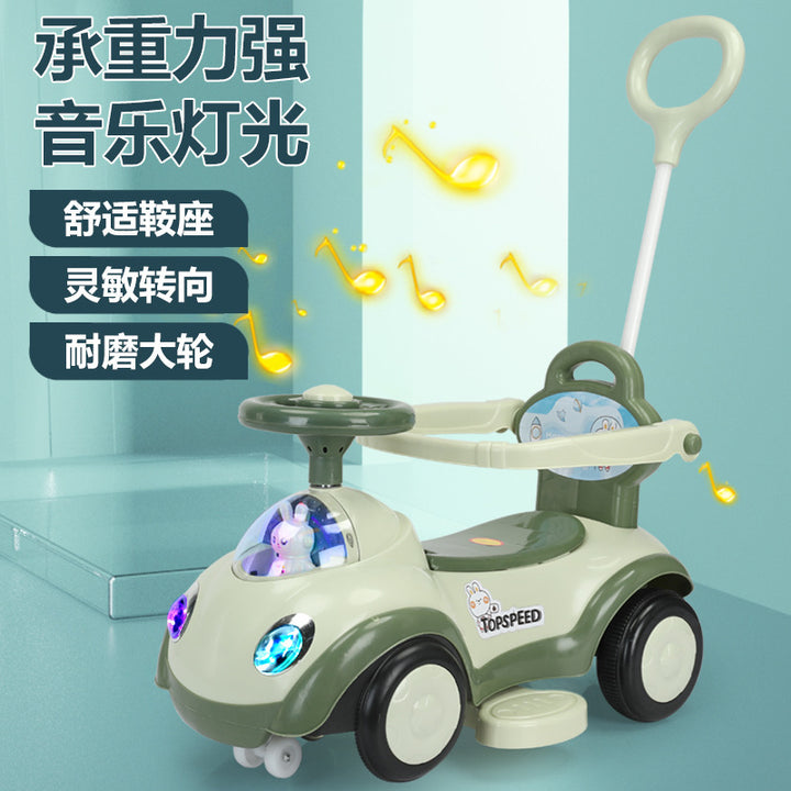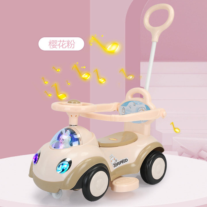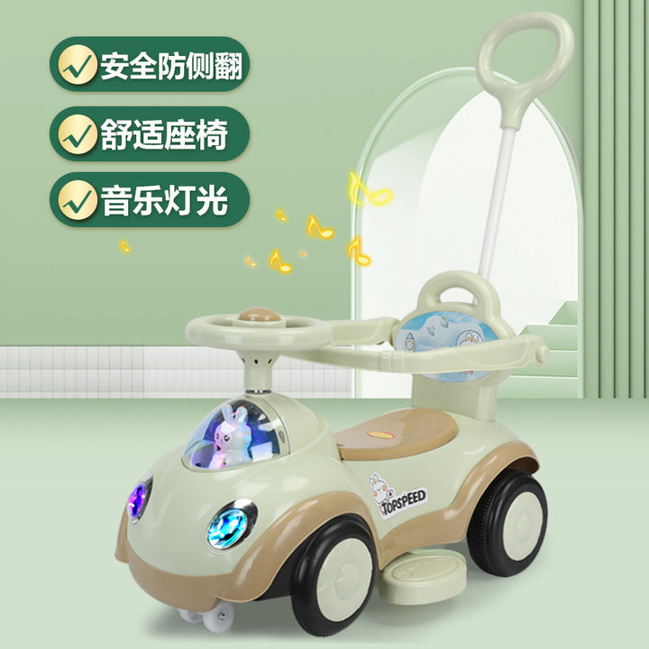 Children's hand push and twist car with guardrail 1-3 years old baby stroller sliding music lights Children can sit adults