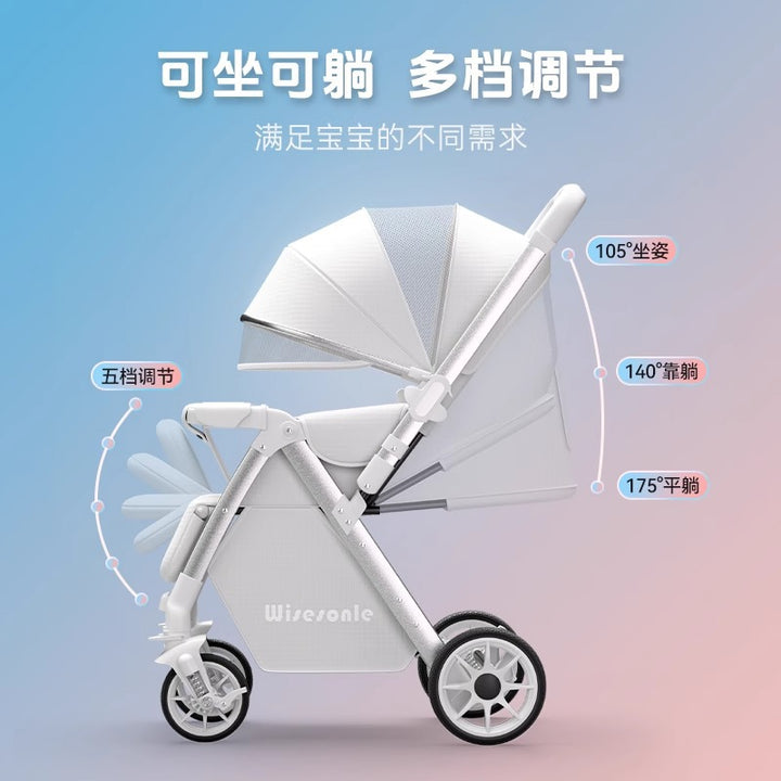 Children's lying light stroller can sit on folding stroller, baby walking artifact can be high landscape two-way stroller