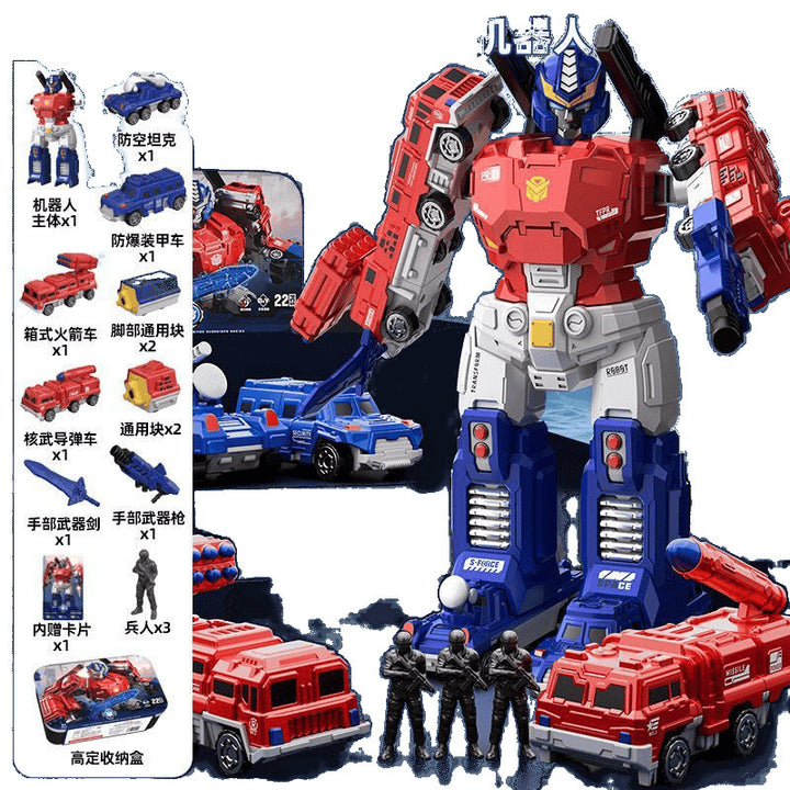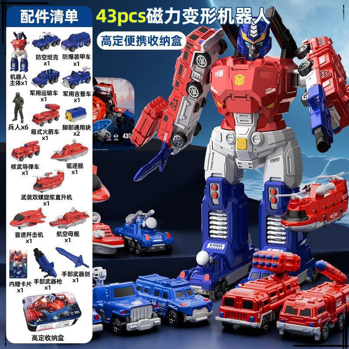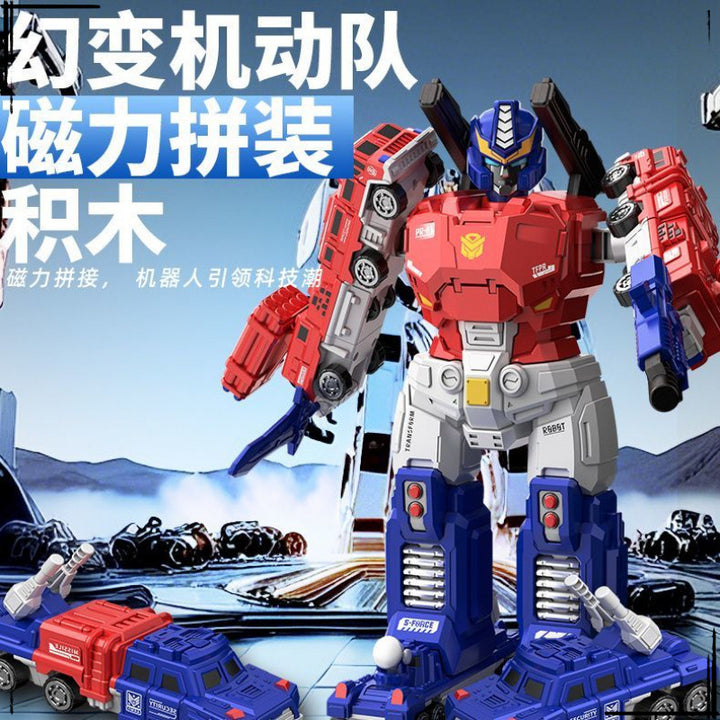 Children's magnetic toy car King Kong boy building block assembly and splicing 6 fire truck deformation robot 2-3 years old gift