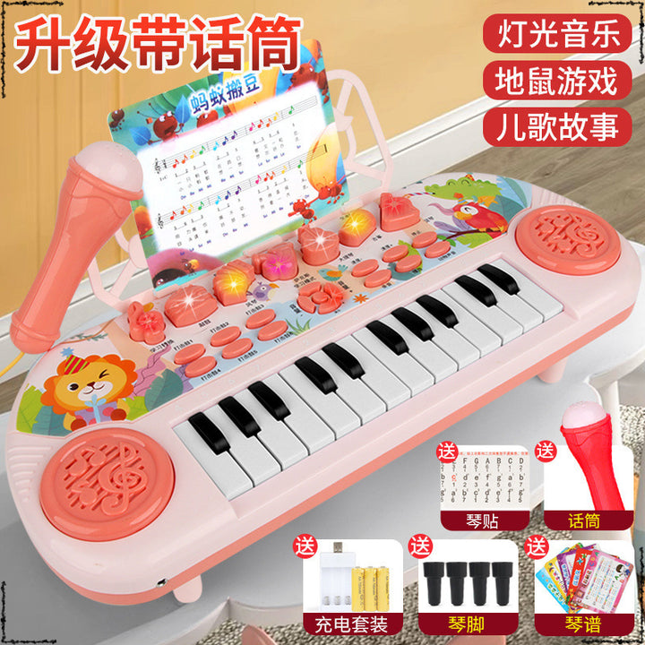 Multifunctional whack-a-mole electronic organ original black, [With microphone] Multifunctional whack-a-mole electronic organ original black, [With microphone] Multifunctional whack-a-mole electronic organ lemon yellow, [With microphone] Multifunctional whack-a-mole electronic organ macaron powder, Multifunctional 24-key children's electronic organ - random color |