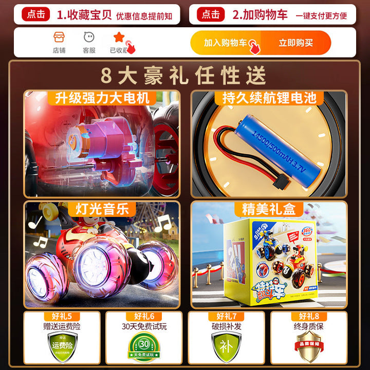 Children's remote control car electric toy racing off-road boy stunt car tumbling toy car dumper birthday gift