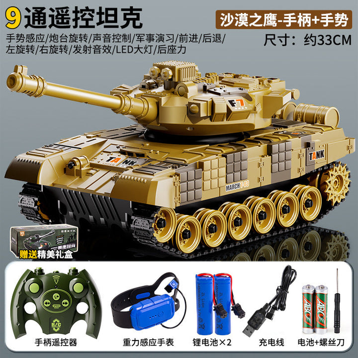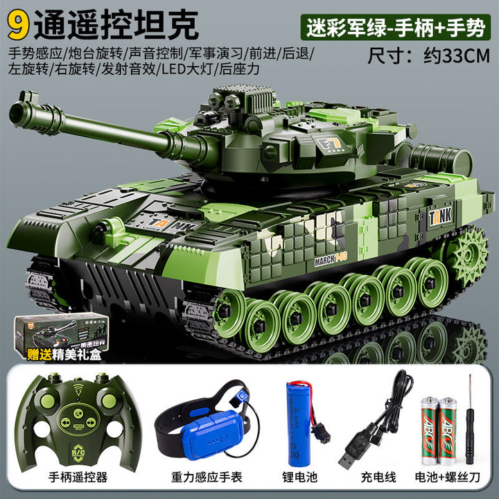 Children's remote control car tank big toy armored tracked model car can fire electric car boy birthday gift