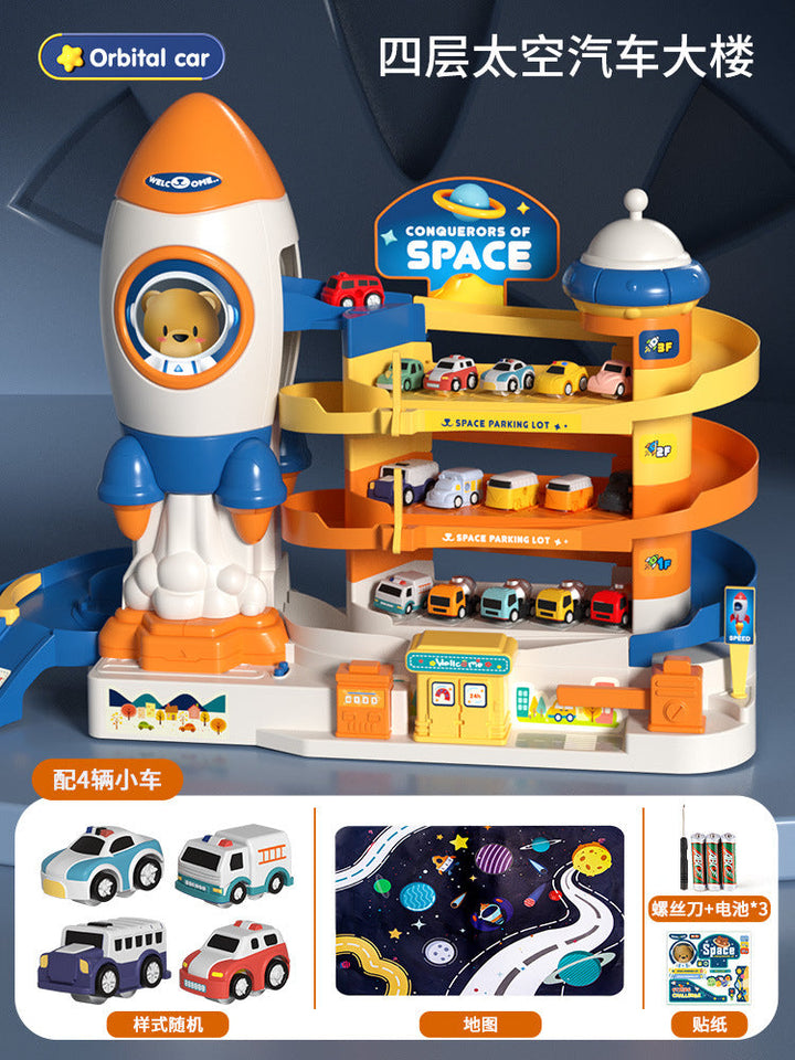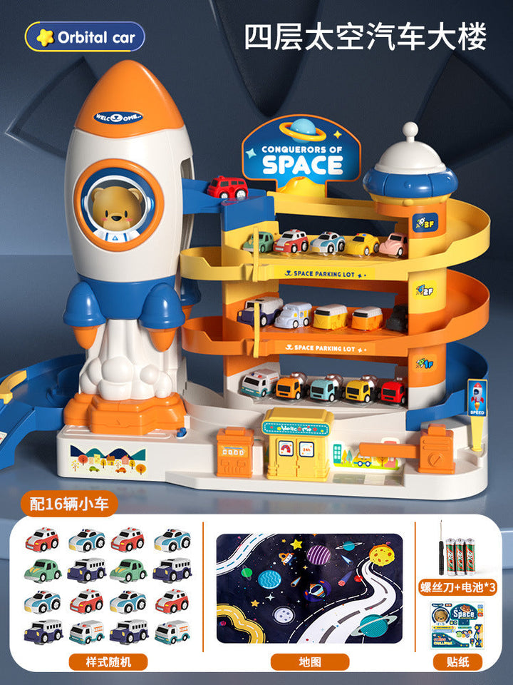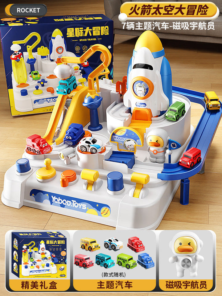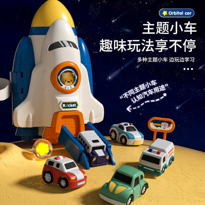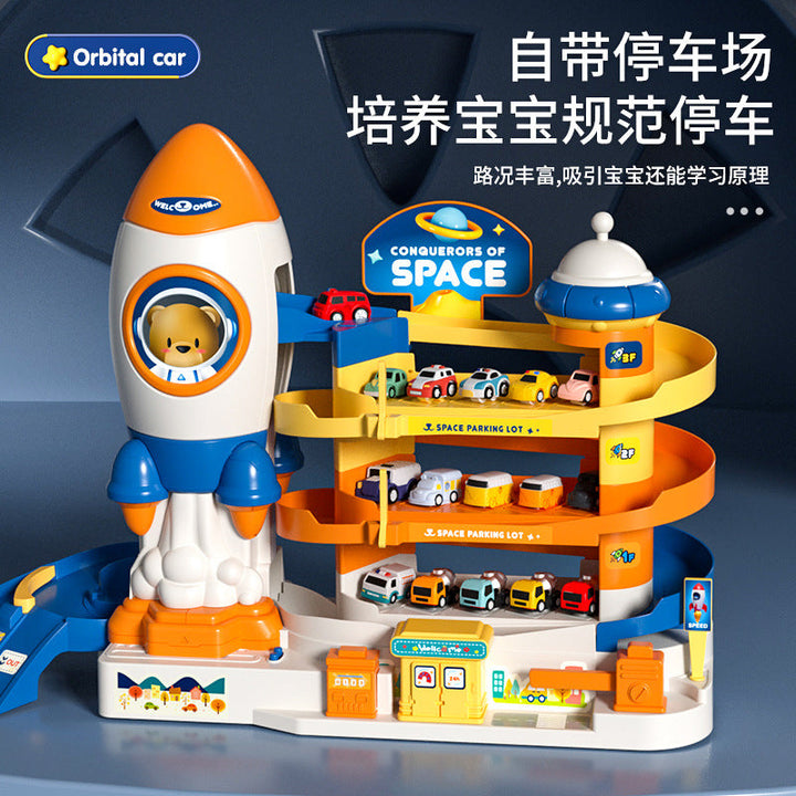 Children's Rocket Space Adventure Boy Railcar Toys Car Building Parking Lot Puzzle Wholesale
