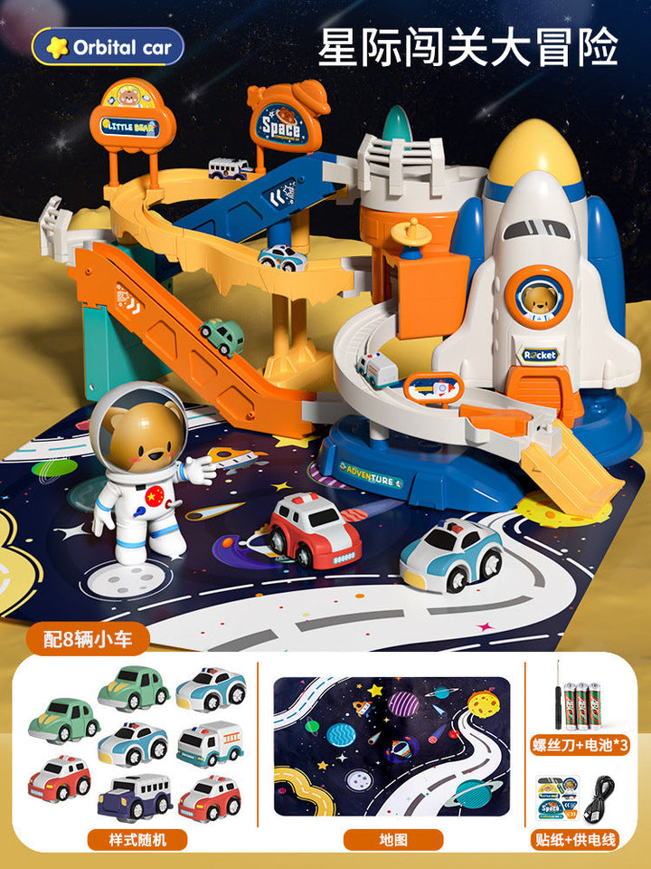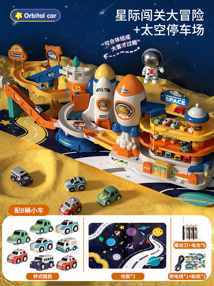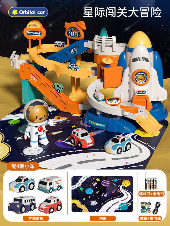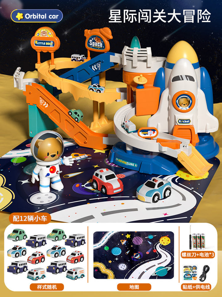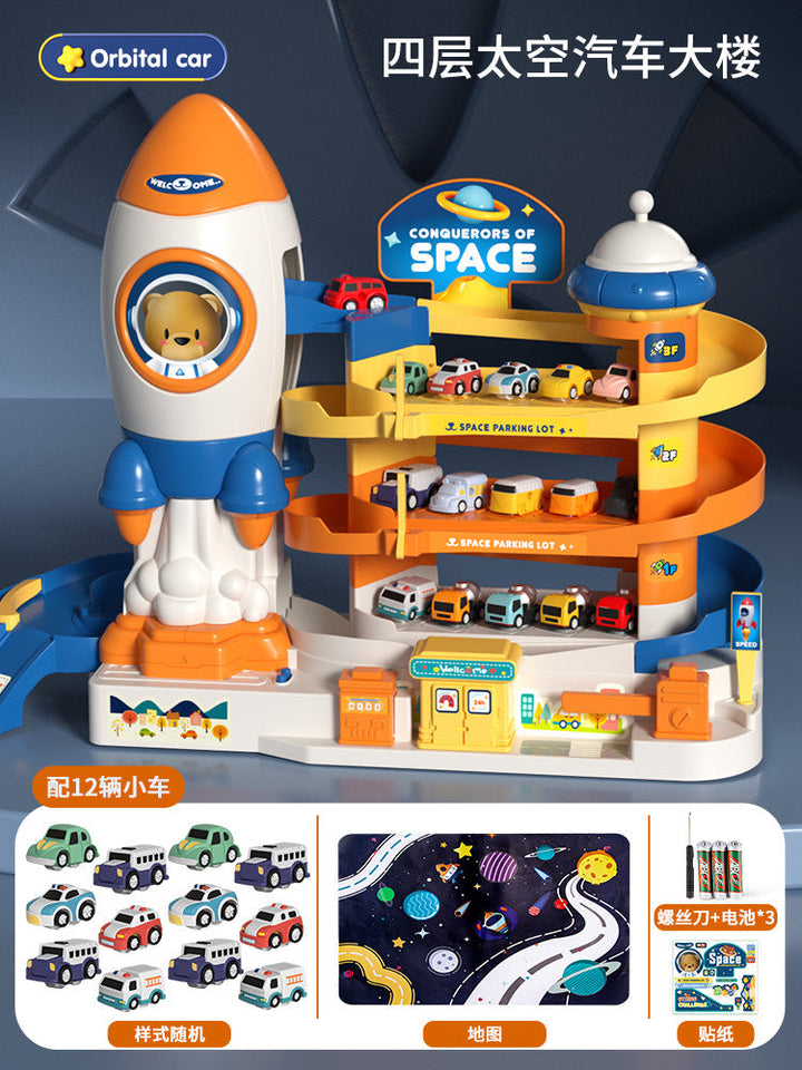 Children's Rocket Space Adventure Boy Railcar Toys Car Building Parking Lot Puzzle Wholesale