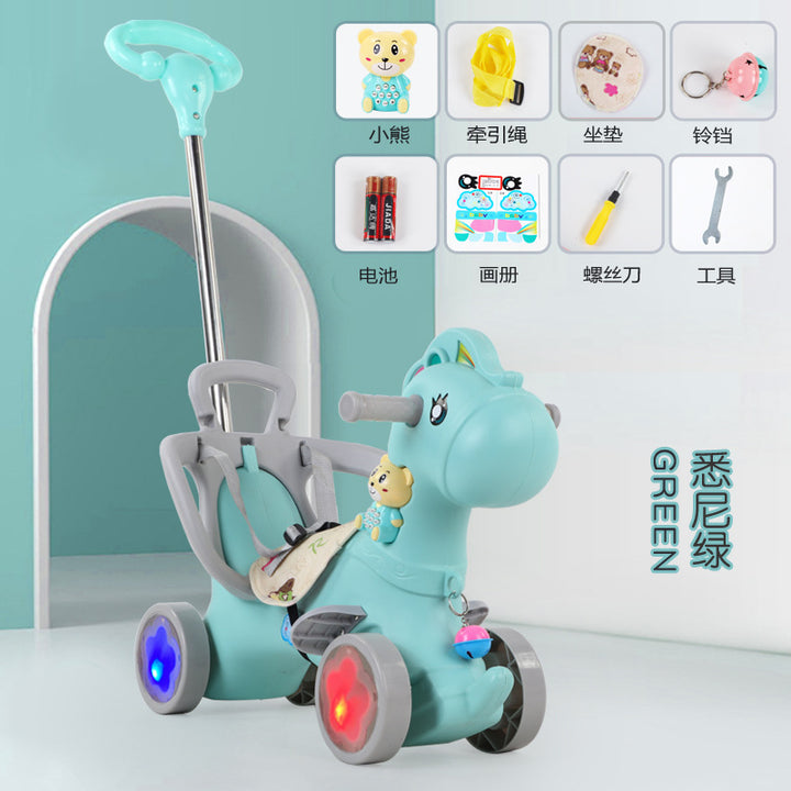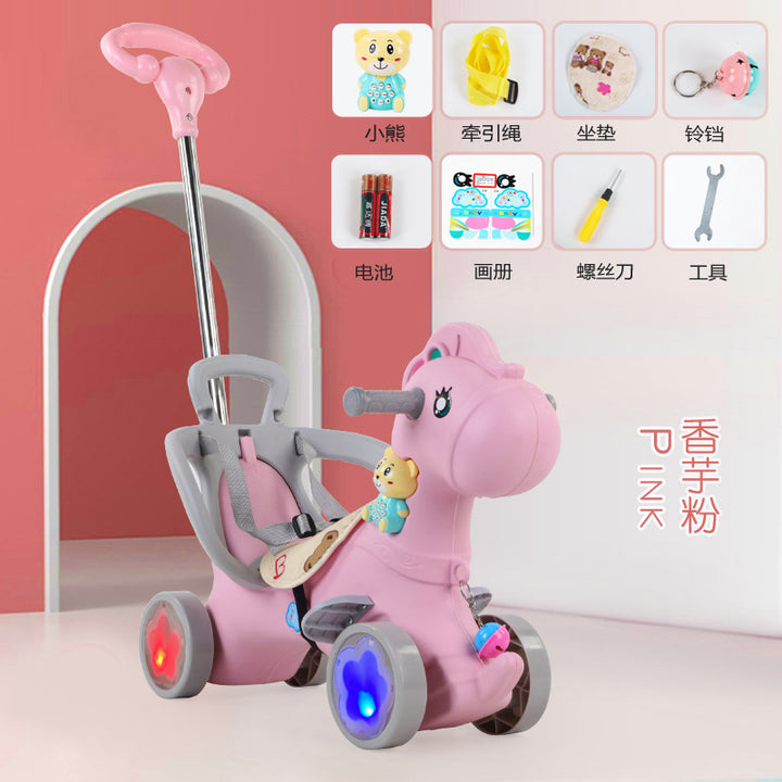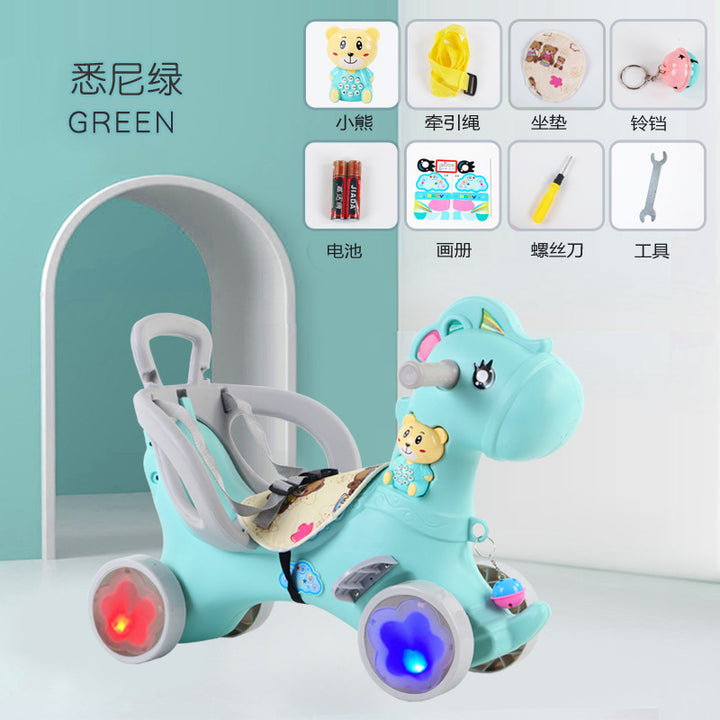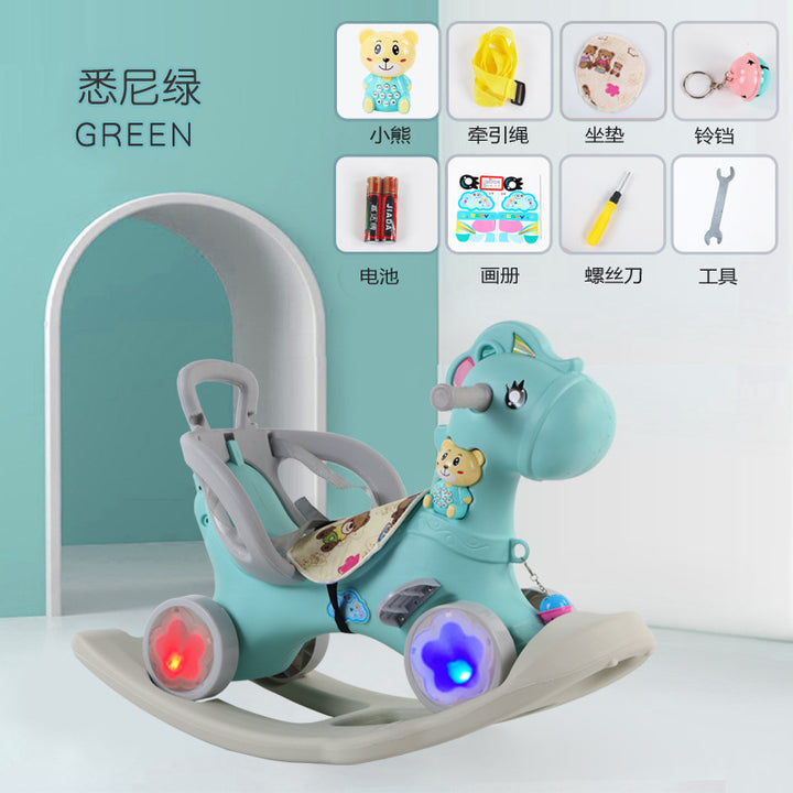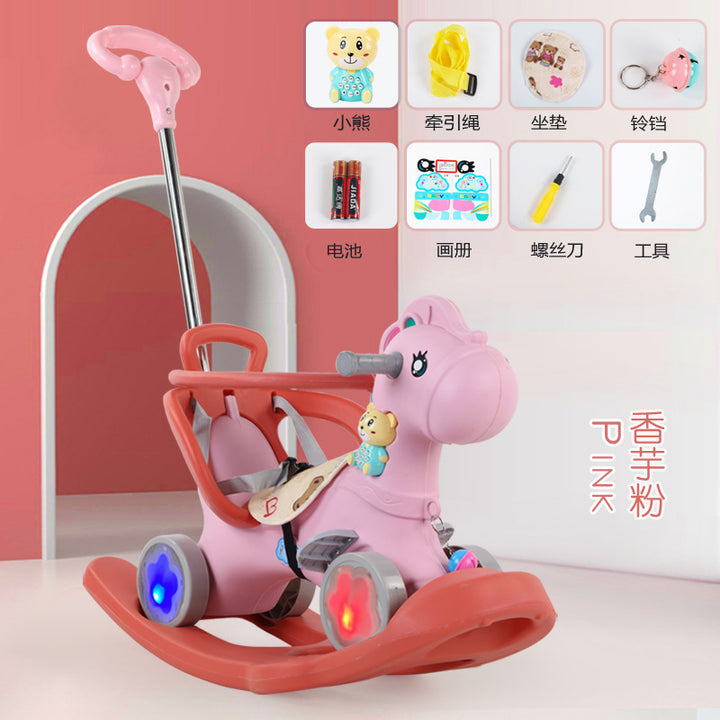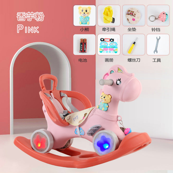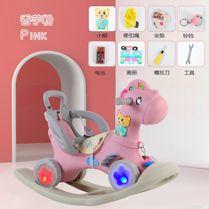 Children's rocking horse Trojan rocking chair dual-purpose multi-functional baby stroller with music One piece of baby rocking horse will be shipped.
