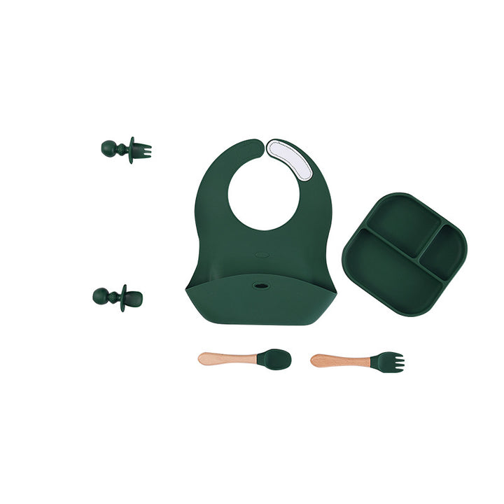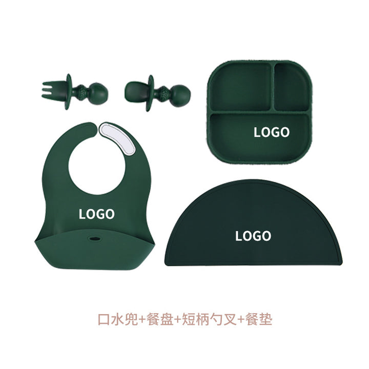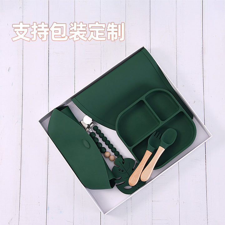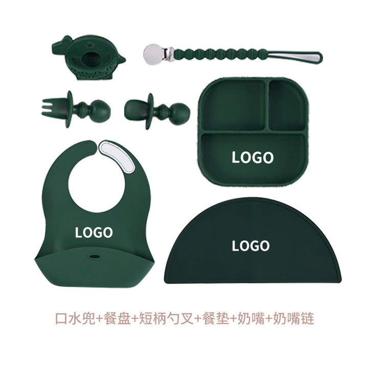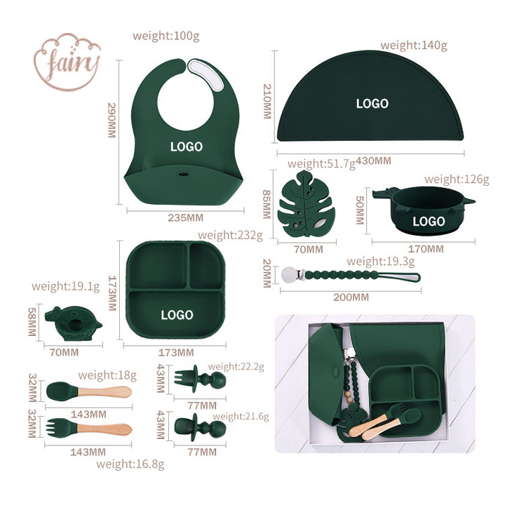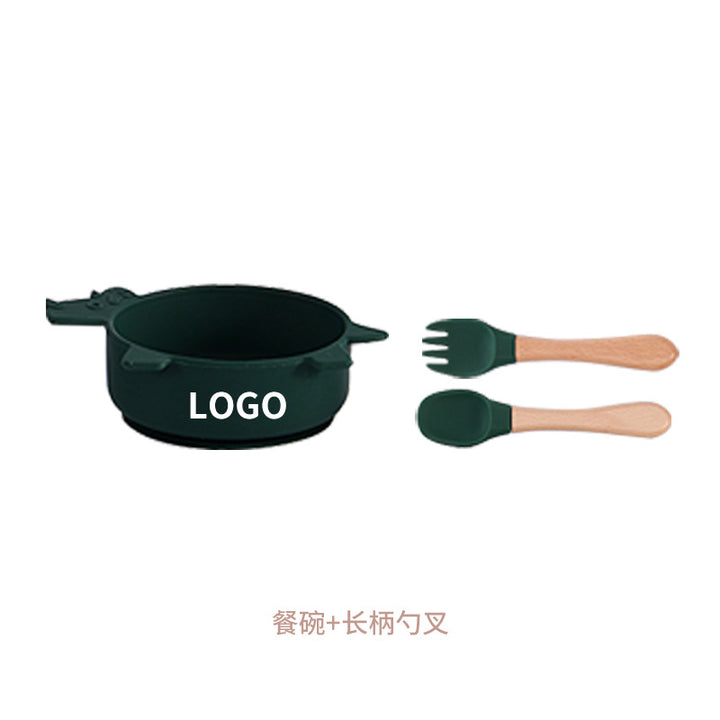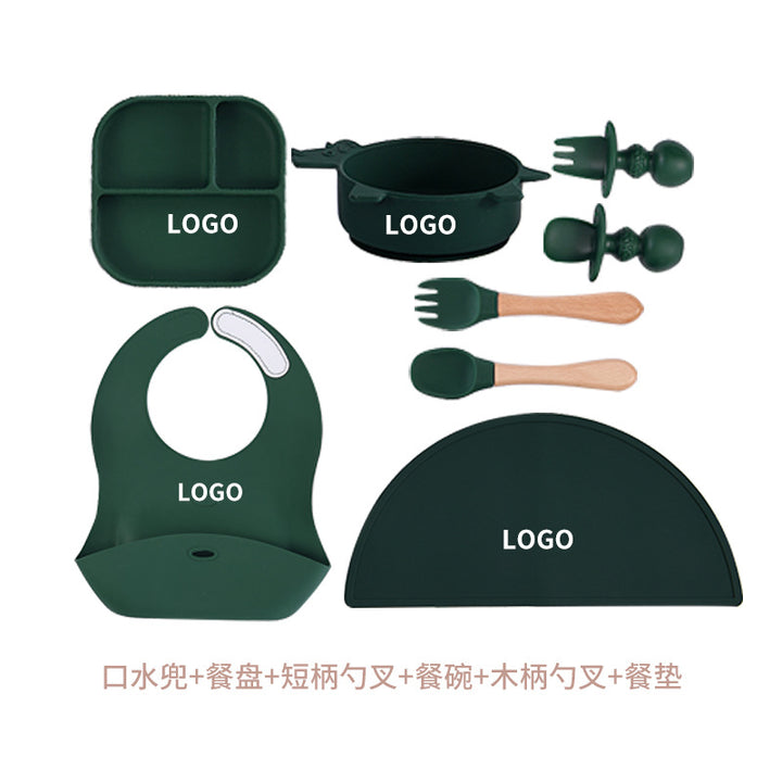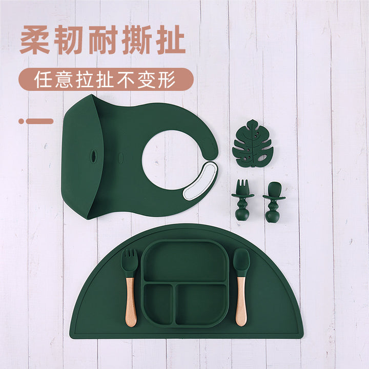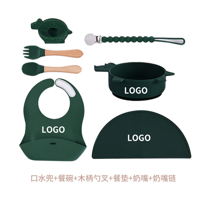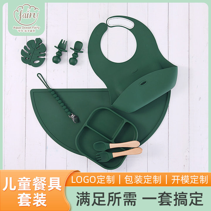 Children's silicone plate set 11-piece set, suction cup non-slip bowl and spoon set, baby food supplement integrated feeding tableware