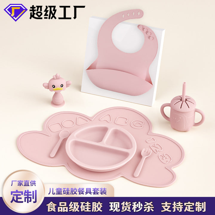 Children's Silicone Plate Set Baby Products Baby Food Bowl Fork Spoon Bib Four-piece Tableware Set