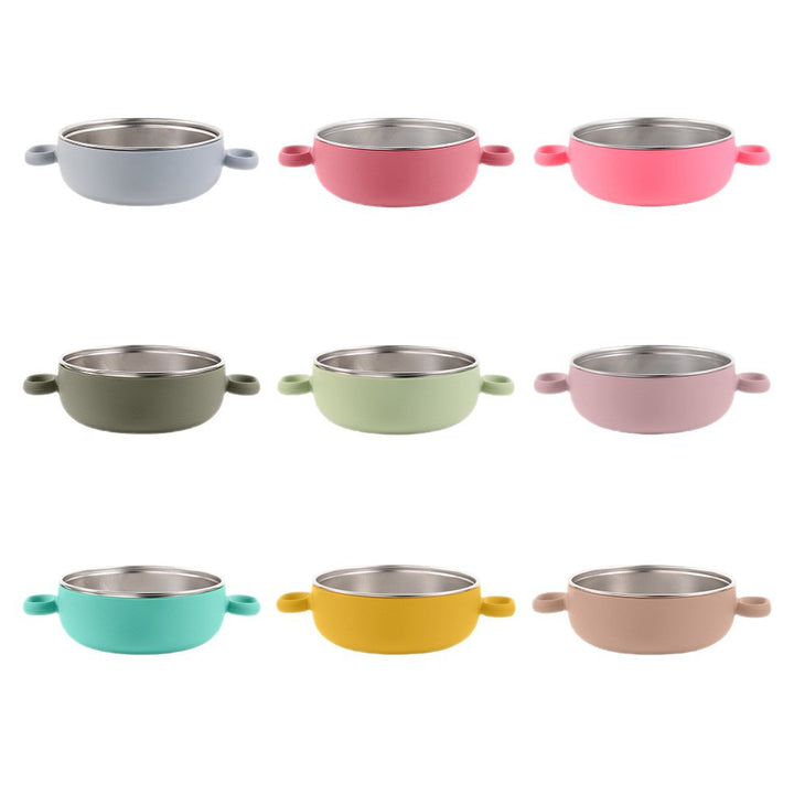 Children's silicone stainless steel 304 binaural bowl manufacturer's new baby silicone feeding tableware set complementary food bowl