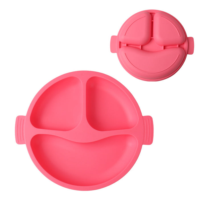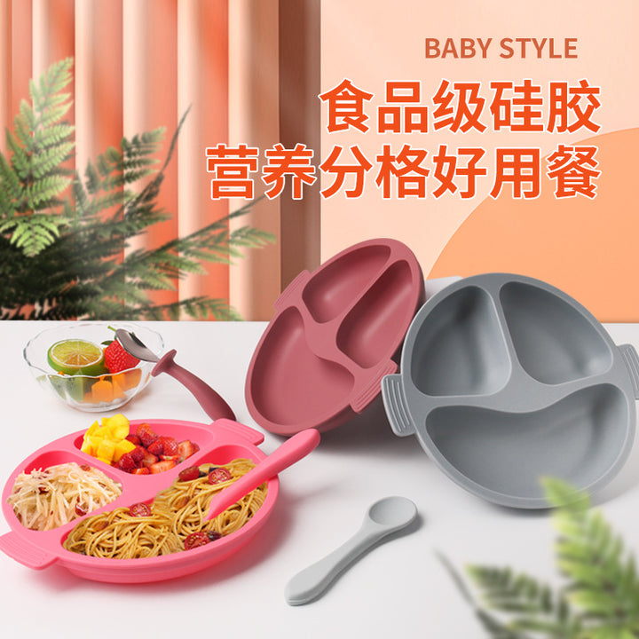 Children's silicone tableware Infants and toddlers Smiley face Three-grid plate Baby feeding complementary food bowl Spot silicone tableware set