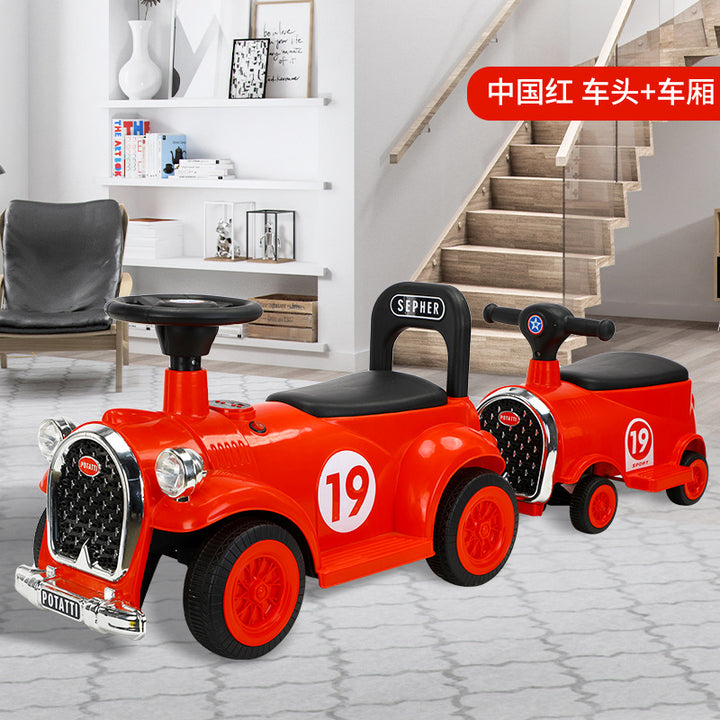 Children's small train can ride electric car with music lights four-wheel car double baby toy children's stroller