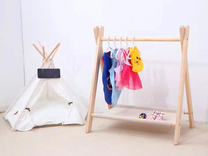 Children's Solid Wood Hanger Newborn Clothes Hanger Children's Clothing Floor Display Hanger Cat Dog Wardrobe Pet Hanger