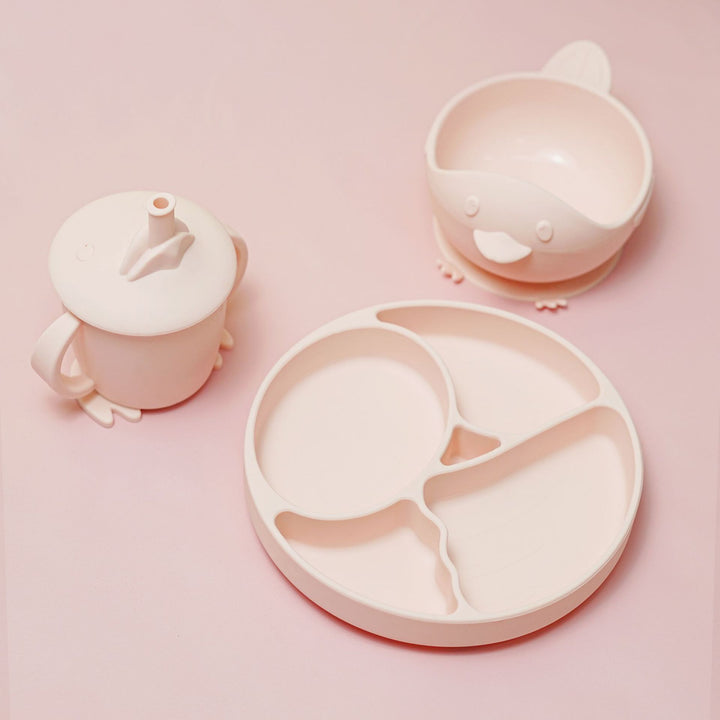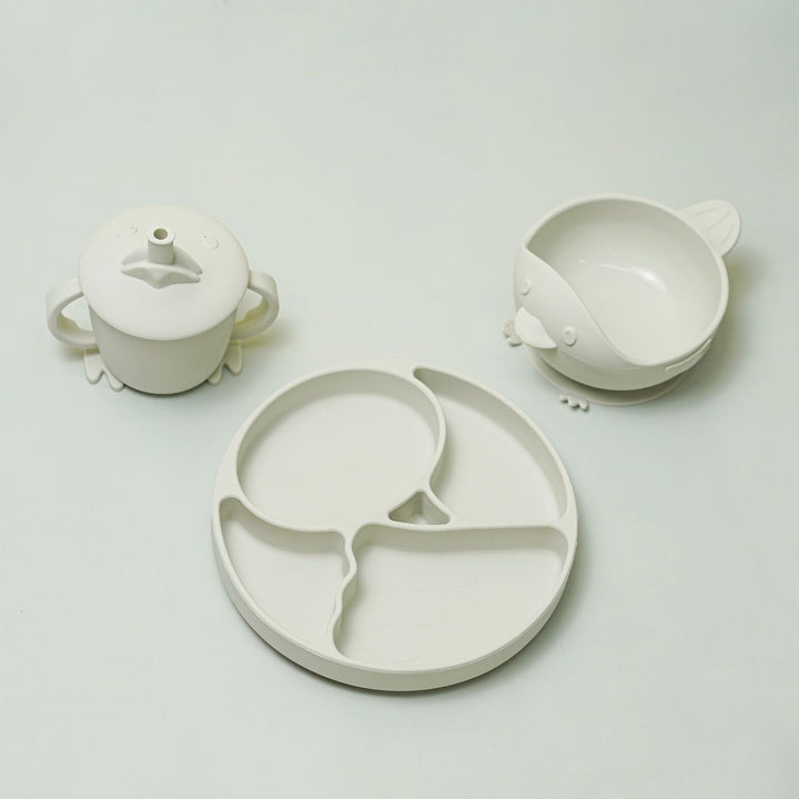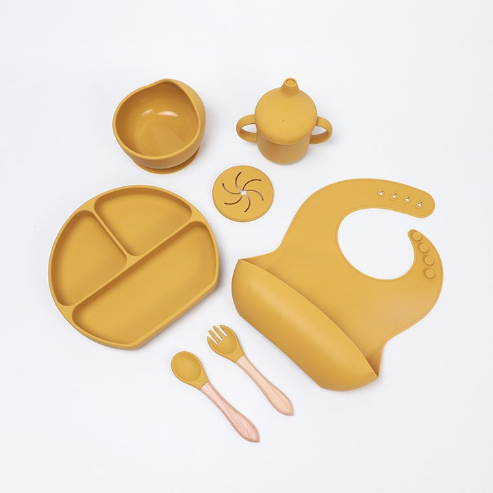 Children's tableware feeding set Baby silicone bowl Fork spoon Baby food supplement bowl Plate Food grade silicone plate