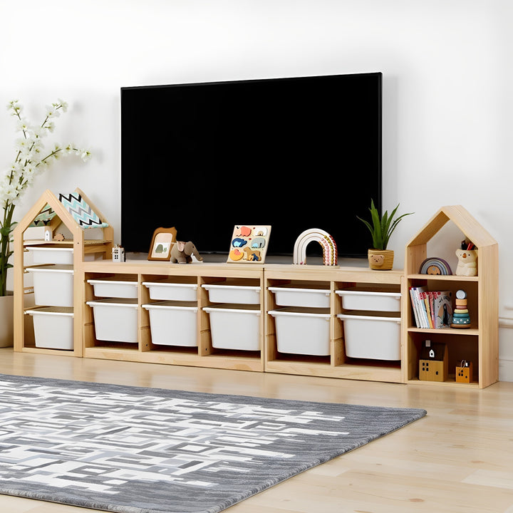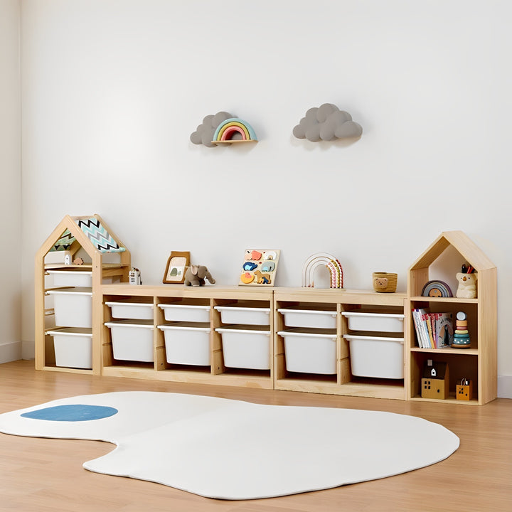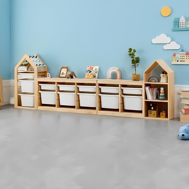 Children's toy storage cabinet Living room against the wall Large capacity sorting shelves Baby storage cabinet Solid wood toy cabinet