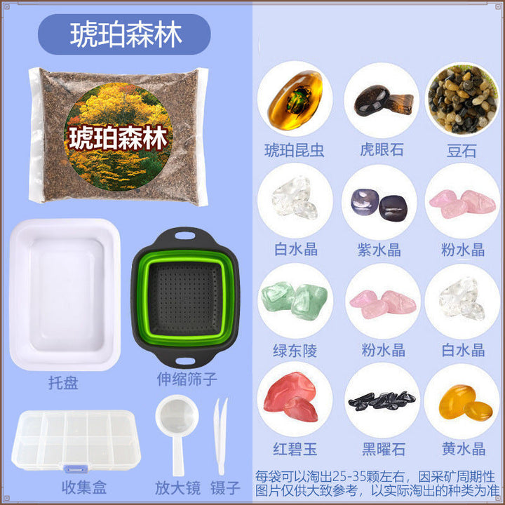 Children's Treasure Hunt Adventure Toys Natural Crystal Rough Stone Agate Amber Gem Set Digging Gems Ore Puzzle