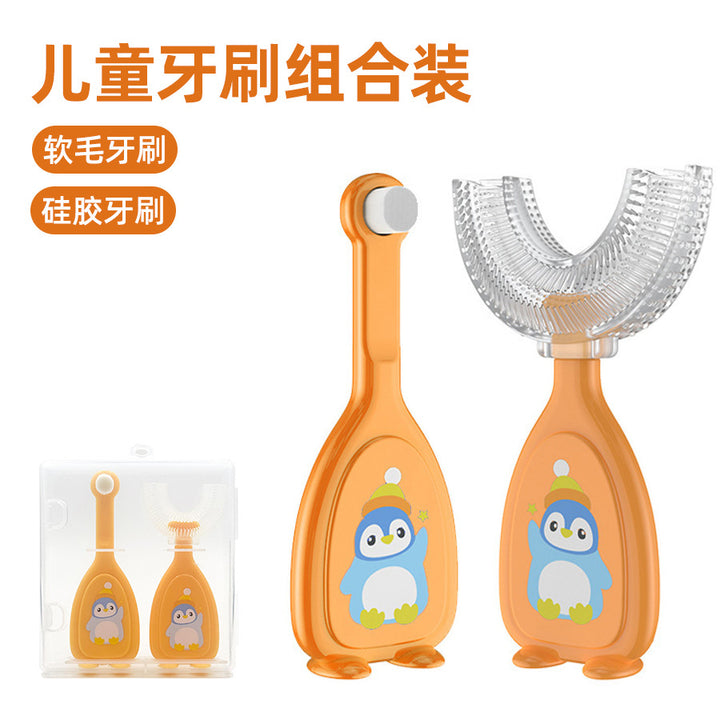 Children's u-shaped toothbrush Baby ten thousand hair toothbrush Baby oral soft silicone toothbrush set Children's toothbrush