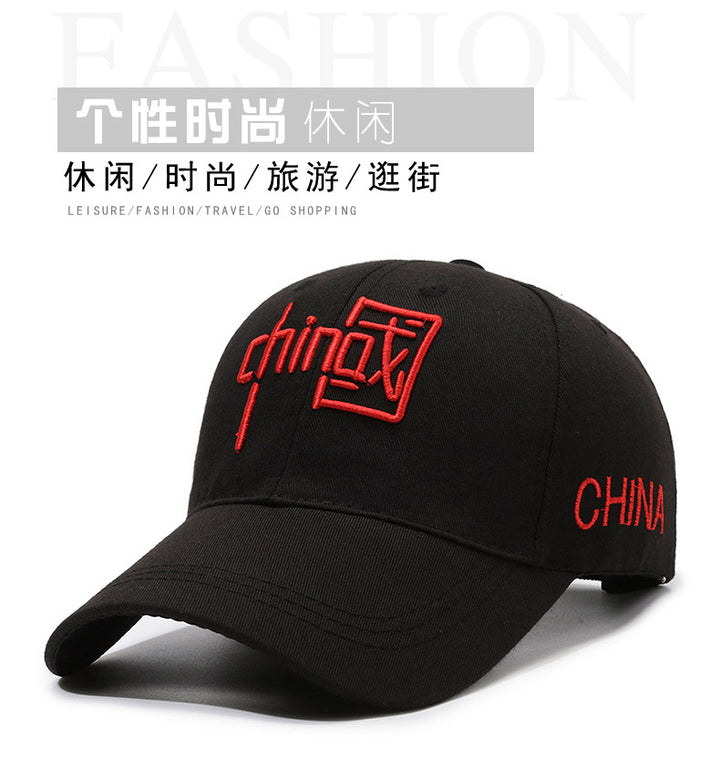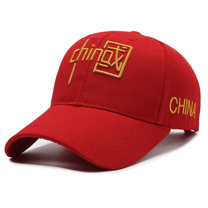 China Red Hat Men's Embroidered Baseball Cap Women's 2023 New Sunscreen Shade Sun Hat Sports Cap