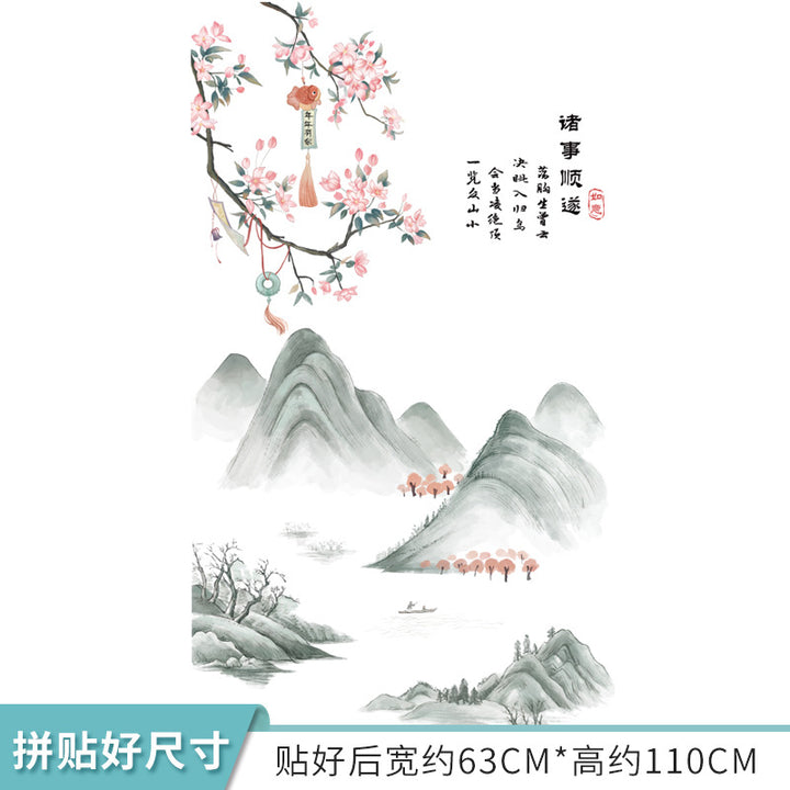 Chinese flower plant wall sticker landscape background sticker living room sofa decoration self-adhesive sticker ink wall sticker